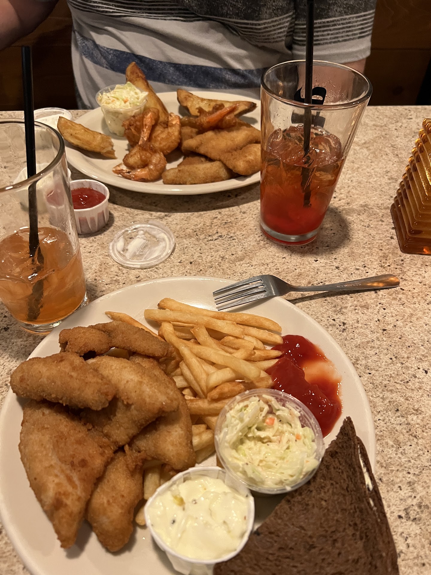 Read moreFirst time my husband and I ate here and we will not be returning. Firstly, there was chicken bones amongst other random scraps of food under the tables. Kind of expected the place to be dirty since it's a bar but still.. We went here because we are fairly new in town and are in search of a good fish fry. This is NOT the place. There was a wait so we started a tab at the bar. Bartender forgot my drink, and started making other drinks. Husband had to remind him about my soda, even though it was only a few mins passed when we first ordered the drinks. My husband ordered a seafood platter and I ordered a cheeseburger. His fish was burnt and the fries were hard. Waitress forgot his soup and didn't warn him it was scolding hot when it was served at the end of his meal. My burger was undercooked and tasted like a McDonald's patty, also hard fries. Our waitress didn't check on us and we had to flag her down several times for refill of drinks, soup, and napkins. Her attitude wasn't the best either. As we were waiting for our bill, we overheard a patron ask if there were any open tabs, as she had enough to drink and had her chicken ready to go. The bartender replied with my husbands full name, with the credit card in his hand, showing it to the customer!!! The customer then started saying she was husband and to put her drinks and meal on the tab!!!! We decided that was enough of Parnells for us. I would give zero...