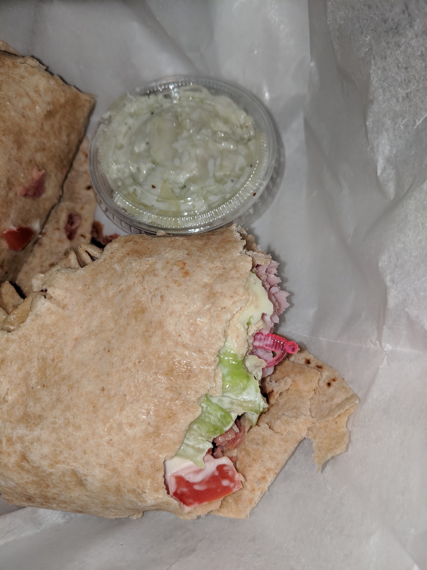 Ordered food from there through Eatstreet. I ordered a wrap and after I took a few bites, I bit right into a plastic toothpick. It was sitting flush inside the wrap, like it fell in or something. I took a picture of it too right away. I looked and found another toothpick in my other half of the wrap but this one was pushed all the way through.