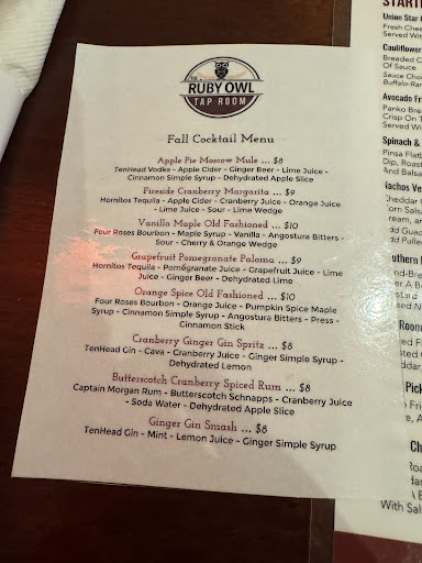 Read moreThis food is AH-MAZING!!! I will definitely come back when I am in town. We all ordered something different and shared. EVERYTHING tasted so good! It's REAL food. Not just microwaved burger patties or cheesecurds. Ruby Owl's burgers, hot sandwiches (I loved the Reuben), and appetizers were top-notch! My family enjoyed their meal very much. My 8 year old wanted another order of cheesecurds-they were so good, we went ahead and ordered it-because-YUM!! We made some substitutions because of our diet, and they were able to accommodate with ease. We also asked questions about food preparation, and they were happy to answer. I don't have any pictures of the food because we ate it up! They offer regular table seating and the high barstool type seating. My children would have loved the higher chairs, but I find them very uncomfortable. The waitstaff was helpful and friendly. The prices are a tad higher than say, Culvers, but the food tastes so much better and authentic. We didn't realize this, but there is parking in the back-so convenient. I am very excited to be going back. Thank...