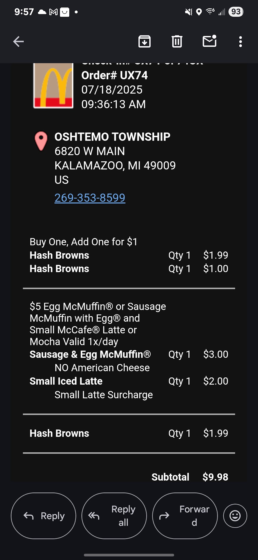 Tried calling 4 times, no answer. Drove back. Waited another 20+min in line for the refund. Told the lady about it and pulled up to the window after waiting.