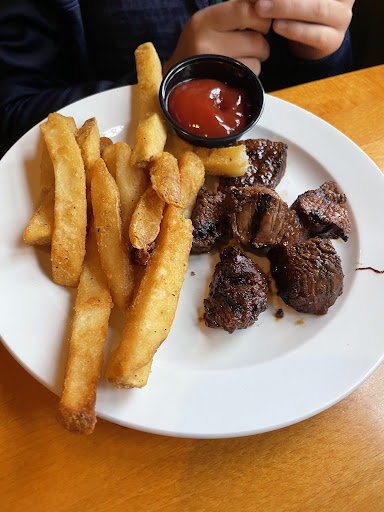 It would seem we might have hit Hobbs on a bad night—but it wasn’t exactly the experience we had hoped for. We knew right up front that something was off when we arrived at 5:10 (10 minutes after opening) and were told it would be a 10 minute wait to allow the waitress to “catch up” despite the many open tables. Our first contact with the waitress was when she came by to deliver water (we had been sitting for awhile already) and tried to her immediately. We literally had to detain her to order drinks and apps. She talked us out of ordering clam chowder as it would “come out at a different time than the poutine” she said—which we had ordered while she was still standing there. It was odd. Not sure if the waitress was pinch hitting (that was our guess) or just new but her behavior was odd and erratic. When the flight of beer was incorrect (which we self remedied by going to the bar as the waitress was no where to be found) the waitress threw the bartender under the bus, stating she didn’t put it in wrong, they poured it wrong. Ordering dinner was interesting—we weren’t asked which salad size we wanted, how we wanted a burger or our salmon cooked. Shame on us for not speaking up about it—but she did ask about how our son wanted his kids steak tips cooked. After our food arrived the waitress swung by once and asked about how throngs were but didn’t really seem interested in our answer…then she literally backed away from the table while staring at us. It was rather awkward and uncomfortable. My dad asked for more tarter sauce for his fish and it wasn’t until the rest of us were done that the waitress remembered to bring it. Prior to leaving I overhead the waitress telling the people behind us she couldn’t serve them water as they had no ice….huh? Then eventually she did but told the patrons not to put their lips on the glasses but to use straws but didn’t say why. As for the food—it was underwhelming and mostly overcooked. The poutine was a heaping pile of fries with a scant few fries cheese curds and the gravy was really really salty. The quinoa salad was bland with little flavor and the piece of salmon on top was fishy smelling and over cooked to where it was nearly inedible. We didn’t attempt to send it back as the wait time for the food had already been painfully long. Our daughter’s burger was over cooked and served on a burnt bun. The chicken on the other salad was dry and over cooked. Our son’s kid’s steak tips were the only shining star. The wait for the check was painfully long—but ironically no issue with quickly running the credit card. All said and done from the time we walked in at 5:10 to walking out it was close to 2 hours. I hope for the sake of the establishment that this was just a bad night for them—we won’t be testing the theory on that any time soon however. For the parents who read this: bathrooms are clean, there are high chairs and booster seats, the general restaurant is a bit noisy so your kids will likely blend in pretty well. There is kids menu with...