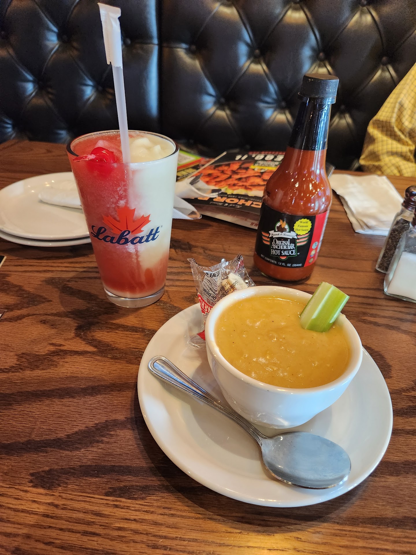 We arrived at 2 PM on a Thursday we thought they were closed. No one was in parking lot nor restaurant. A party of two, we were. The hostess seated us and then return shortly after and said she will also be our waitress. Even though we saw waitresses rhaving fun playing around. She took our drinorder orange Fanta It wasand Ginger ale, to start with they mix their own Gingerale with Coke and 7-Up. It was awful. if they don’t mix their own whatever she gave us was not Gingerale. we ordered cheese sticks for an appetizer, I believe they were banquet brand mozzarella sticks, we had to load them with salt and their version of what they called house hot sauce, which was actually Frank’s hot sauce put in their jar, The American cheeseburger fries and pickle, and chicken tenders and tater tots was our entrée. The cheeseburger was not bad six out of 10. The french fries were either microwaved or air fried probably yesterday. They were awful with no flavor. The tater tots were definitely from the dollar store brand.. for a place that specializes in chicken wings and parts, the chicken tenders were extremely overcooked almost to the point of burnt. The best thing on the entrée plate was the pickle. The ranch sauce with the chicken tenders we literally had to open up the pepper jar and dump into the sauce for flavor. It was just a white liquid. When the bill arrived it was $55. I would’ve been better off going to Aldie around the corner and probably would’ve been much happier, for a new restaurant it was terrible wait time after the mozzarella sticks was 45 minutes, there were no DoorDash orders etc. going out the door we were the only ones there. Why did it take so long. But when the bill came she was right on top of it . Save your money, save your time do not go to this place. It might be great if you go there for drinks and are intoxicated the food might be better to you but I still don’t recommend.. I have notices that any restaurant that proclaims award-winning anything, and pushes banners inside everywhere about how good they are usually are not !! This place did not fail and that expectation. On a scale of 1 to 10. I would say a point 5 .. McDonald’s would be gourmet...
