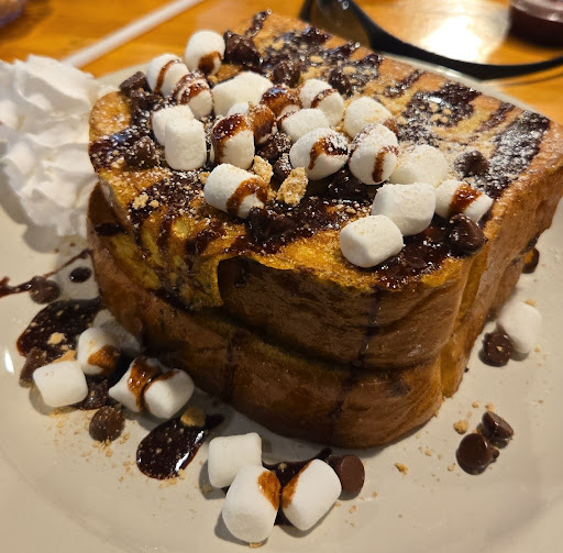 Read moreThe S'mores French Toast at Eggsquisite Cafe in Montgomery is an absolute game-changer! From the moment it arrived, I knew I was in for a treat. The two thick slices of French toast were perfectly golden, topped with a generous scattering of fluffy marshmallows, rich chocolate chips, and a drizzle of what tasted like a heavenly chocolate syrup. There was even a hint of graham cracker crumble, which really brought the "s'mores" concept home. Each bite was pure bliss – the toast was soft and eggy, the marshmallows were perfectly gooey (some even slightly toasted!), and the chocolate was just decadent. It's not just breakfast; it's an experience. Easily one of the best things I've ever eaten, and I'm already planning my next trip back to Eggsquisite just for this. Five stars doesn't even feel...