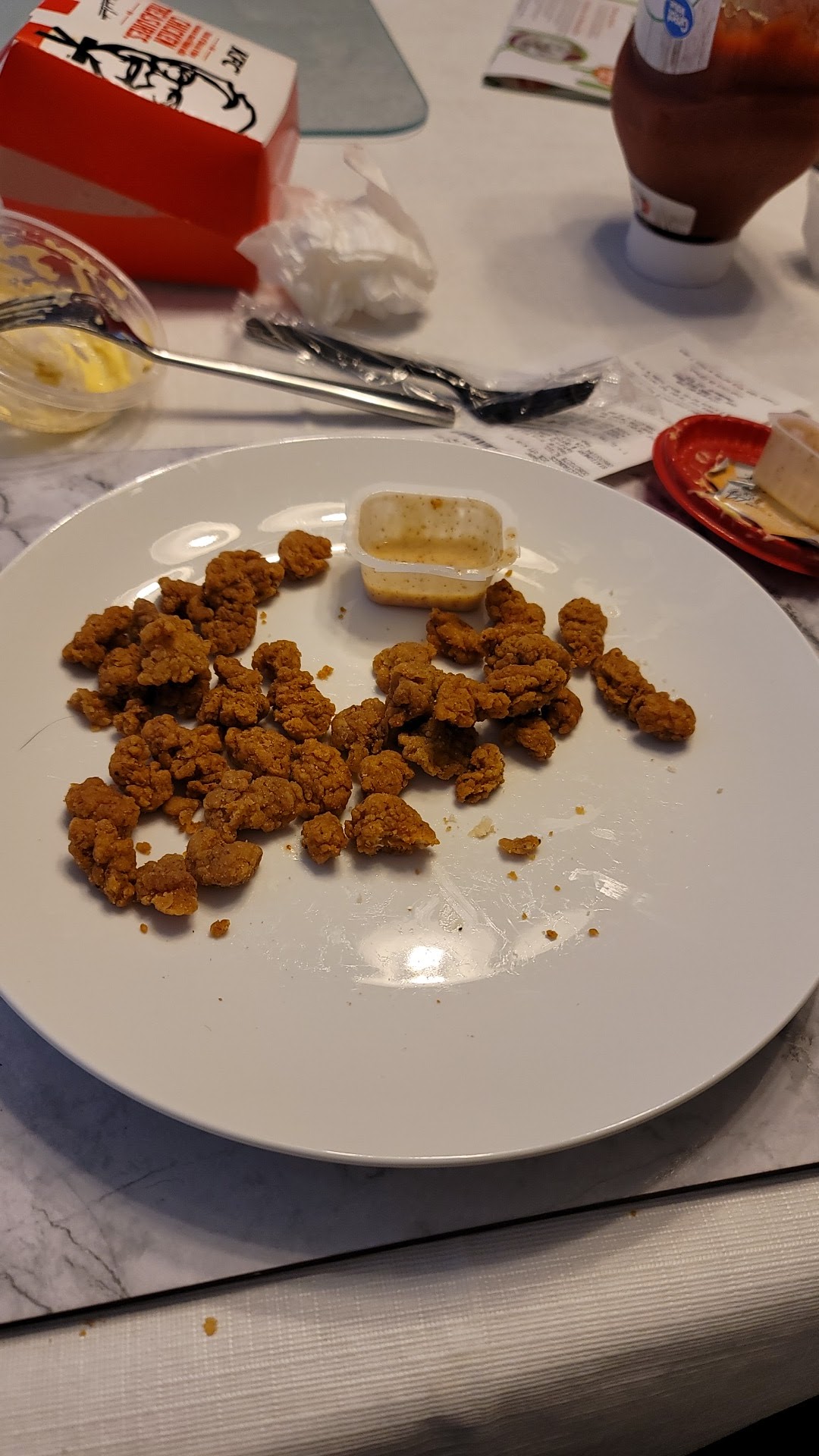 My credit card was charged $21.84. i'm not quite sure what he did, but tenders and a fry doesn't cost $21.84.