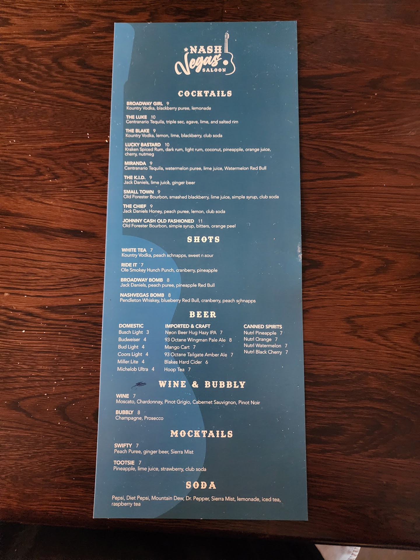 Read moreCame to Oswego over the holidays and wanted a place to get together with friends. My sister recommended this place and it did not disappoint. The server, Bree was extremely attentive to our needs which was a heavy ask seeing there were over 20 of us. The food was really great; Definitely not just typical bar food. The breaded chicken nuggets were delicious and plentiful. The crinkle fries were splendid and we tried every app on the menu. The carnitas quesadilla is a must try. Some people line danced, most mingled and the owners were absolutely marvelous. It's been awhile since we have had such great people in an establishment stop by and truly care about how we were enjoying ourselves, let alone THE OWNERS. It is a cool concept and being from Nashville it was cool to see this in IL. Great job to everyone who made our Xmas get together at Nash Vegas saloon so amazing!!! We will be back and if you live in the area, you have to check this...