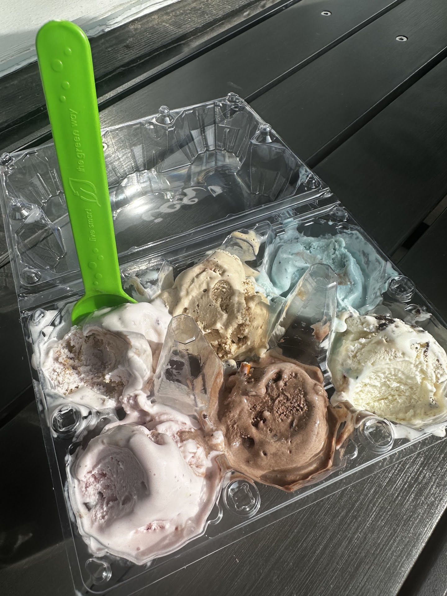 Edited to add onto my review from last year: This is year two of going to The Scoop and it just keeps getting better! Thank you so much for continuing to bring -delicious- new flavors of regular ice cream AND dairy-free options!! We love having a local shop to frequent that has something for our whole family :) __ We tried their two dairy free ice cream flavors (Madagascar Vanilla Bean Coconut Cream & Dutch Chocolate Coconut Cream) and they were delicious!! And when we asked if they could use a clean scoop because of a dairy allergy, they were glad to do so, but also let us know they have some pre-scooped into little to-go cups - which was awesome. All around a great experience and we’ll definitely be back...