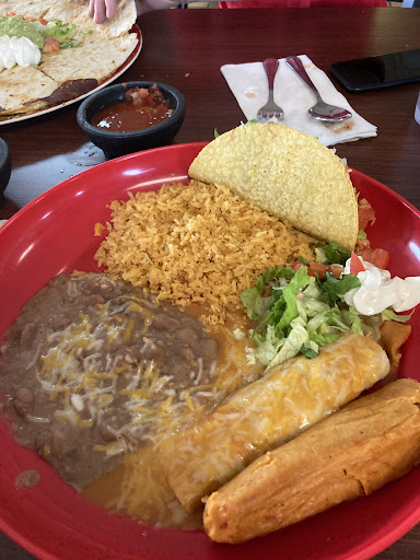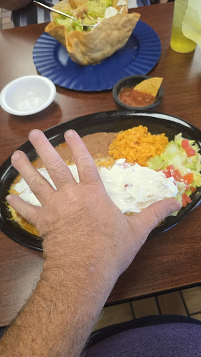 Because the place had a drive-thru window I thought it was going to be a fast food type Mexican food place but I was surprised when we walked in to find a regular sit-down Menu restaurant very clean very nice friendly people and well worth coming back for even though I don't live anywhere near here. When I open the menu I thought man these prices are a little bit on the high side but not too bad until my food came out you can see the two pictures I posted of my chimichanga I have a 9 inch spread from the tip of my thumb to the tip of my pinky that chimichanga is made on a 12-inch tortilla and is massive not just that it's thick filled to the brim with all of the right things. They is an absolutely wonderful enchilada sauce that is homemade in-house in the chimichanga made it really spectacular. The shredded beef in the chimichanga was also fantastic I suppose it would be fantastic in anything but I can't say enough about this place the food that I had was wonderful and my dinner guests had a taco salad that was equally as good. The owner is very gracious and humble and appreciative of compliments. Well worth the money...