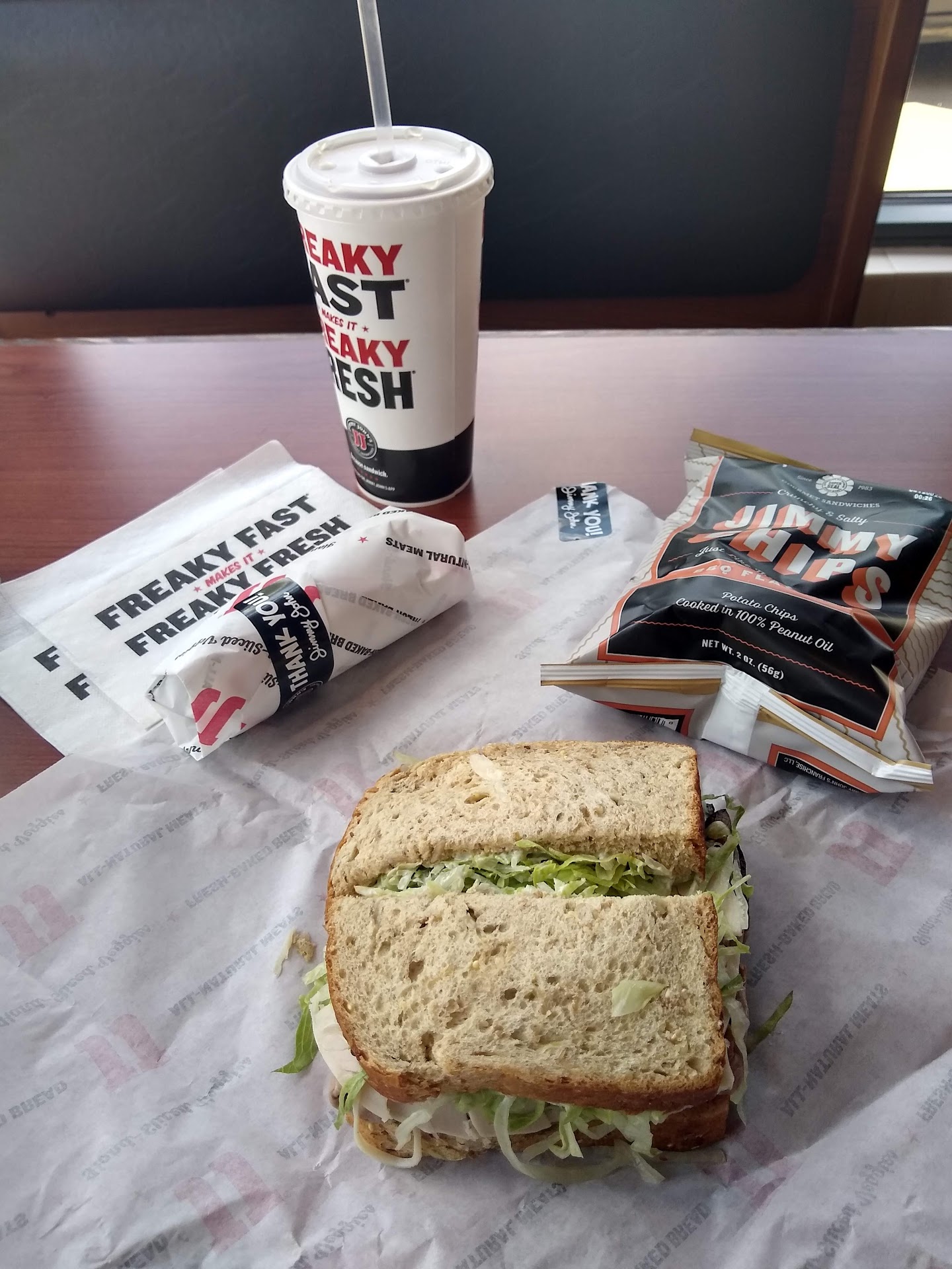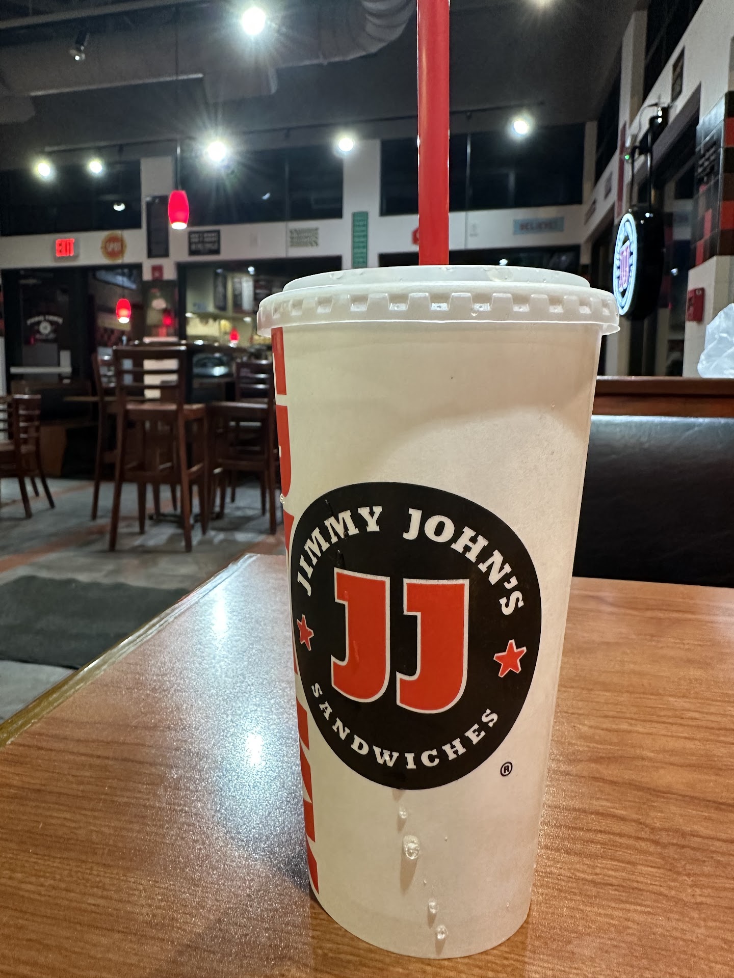 I was going to drive home from work back to Joliet and kill myself, but I drove by this Jimmy Johnâs. Jimmy Johnâs is always closed whenever I try to eat at one; the last time I think the location in McHenry had just been robbed unfortunately, so they called it a day. The lady on the drive through microphone had a soothing voice like the trauma nurse who helped me stay calm during my MRI and CT scan when I fractured multiple vertebrae in my neck and told me I wasnât going to be permanently paralyzed, and she asked if I would like my sandwich cut in half. I do like my sandwich cut in half, but I forgot to ask because Iâm mentally overwhelmed right now, and honestly I would not have ate at all if I ordered the sandwich and then forgot to ask for it cut in half because I genuinely wouldâve felt so stupid and upset at myself that I wouldnât have been able to wait until I got home to peacefully try to end it. I was helped quickly by a brunette of intimidating beauty with arm tattoos, and another team member brought my sandwich almost immediately afterward to keep the drive through line moving. Everyone smiled even though itâs Saturday and itâs probably busy, and everything about my order was correct. Thank you Jimmy Johnâs employees of this location, Iâm going to try and eat my potato salad and sandwich, drink my Dr Pepper, and not end...