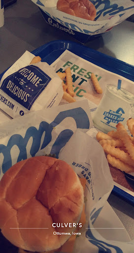 Read moreKeep I mind this review is relative to other fast food. My wife and I both had Culver's Deluxe burger on our last visit. There are many reasons we love Culver's and visit them when we are in town. We really like the crispy edges of their butter burger patties, which gives kind of a carmelized taste to the meat. But more than that, we love the fresh veggies including lettuce and red onion, which are always crispy. You don't normally get red onion slices on burgers and it gives a bit of a more special flavor. We also like their crinkle-cut fries, which are always really hot and tasty. Finally, their frozen custard is very delicious, and they offer a very small-size option, which my wife loves, for when you are already full, but want a small desert treat that doesn't push you over the edge! If you haven't been here before, I would recommend...