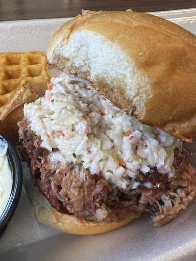 Read moreRibs? Yes! Brisket? Yes! Pulled Pork? Yes! All amazingly tasty and cooked to perfection...and drizzled with the best BBQ sauce I have ever had (hoping I can buy it in a bottle soon, wink wink)...we got the meat sampler plate. The cole slaw and baked beans were good. The place is small but decorated with a super cool vibe. I was actually mentally stealing decor ideas while waiting for my food. The owner was great but he was the cashier, cook, and the only one working. That's my only ding. It was Saturday around noon and it took awhile to get our food and there were people pouring in as we were waiting. It was too busy to not have help and the service lacked because of it. This is by far the best BBQ joint in NEPA and quite the hidden gem. My advice to the owner is to embrace the awesomeness and hire some help to work the register and to add a big neon sign outside that says "WATCH OUT! WARNING! You may get addicted to our BBQ"......The restaurant has a pavilion where you could sit outside and the public boat launch for Lake Winola is within walking distance. It's a nice setting. Oh, and the cornbread? It comes as a thick yummy waffle....