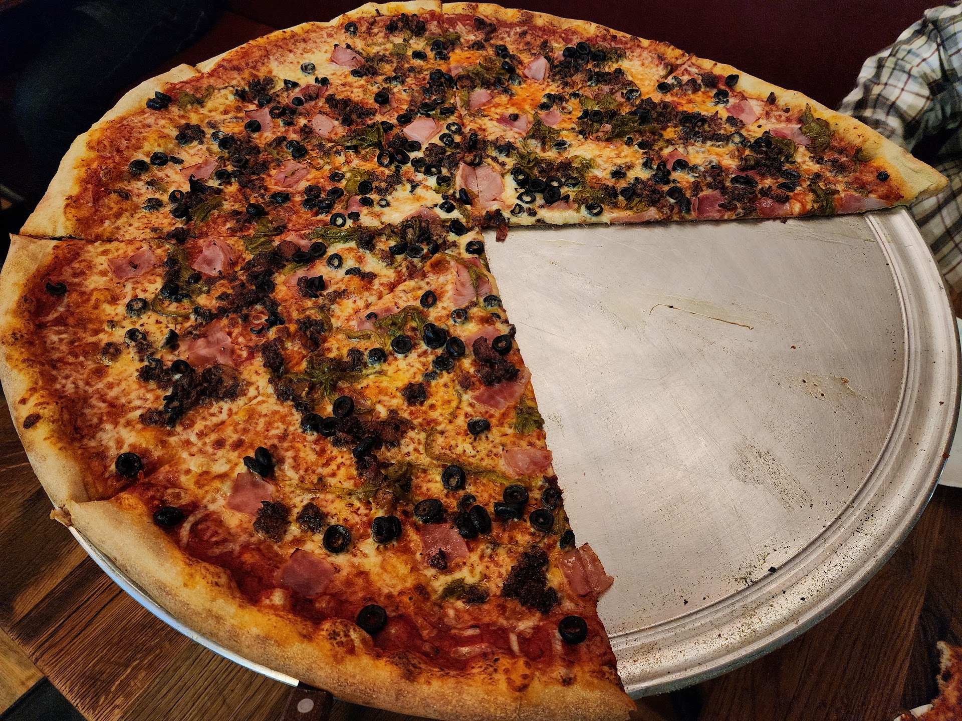 I didnāt realize there was a 2nd location until Sat. Night. While out w my boss I suggested we grab food here⦠the Westport location has ALWAYS been nothing short of a delight. Afterwards Iām sorry I did so. Granted, I didnāt realize breakfast and Cinn. Rolls are no longer served after 3. Thatās my bad! It did seem strange that coffee was no longer served as well! Disappointed⦠we ordered anyway. I had a slice w whites sauce, sausage, basil & garlic plus 1/2 Caesar Salad. Service wasā¦ok/Meh. I did have to get up and track down our server 2x. He seemed to disappear on the regular. But over all was friendly. Food- it seems strange to me that considering the $ mark up compared the ingredients cost⦠sure I understand thatās not the ONLY expense the $ is covering⦠still, there was little to 0 sauce on the pizza-not that I could taste. Garlic⦠I should have noticed that right? Even the basil was underwhelming. My salad had plenty of greens and cheese though lacked in dressing and I expected some type of crouton. Space- from where I sat I could see 6big screen TVās which all had sound going. W/ the place almost empty it seemed excessive and the ? Echo? Generally bad sound quality. I decided to take home about 1/2 my slice. When I asked for some type of to-go box/bag. I was brought an entire pizza box. That seems wasteful and awkwardly irritating.