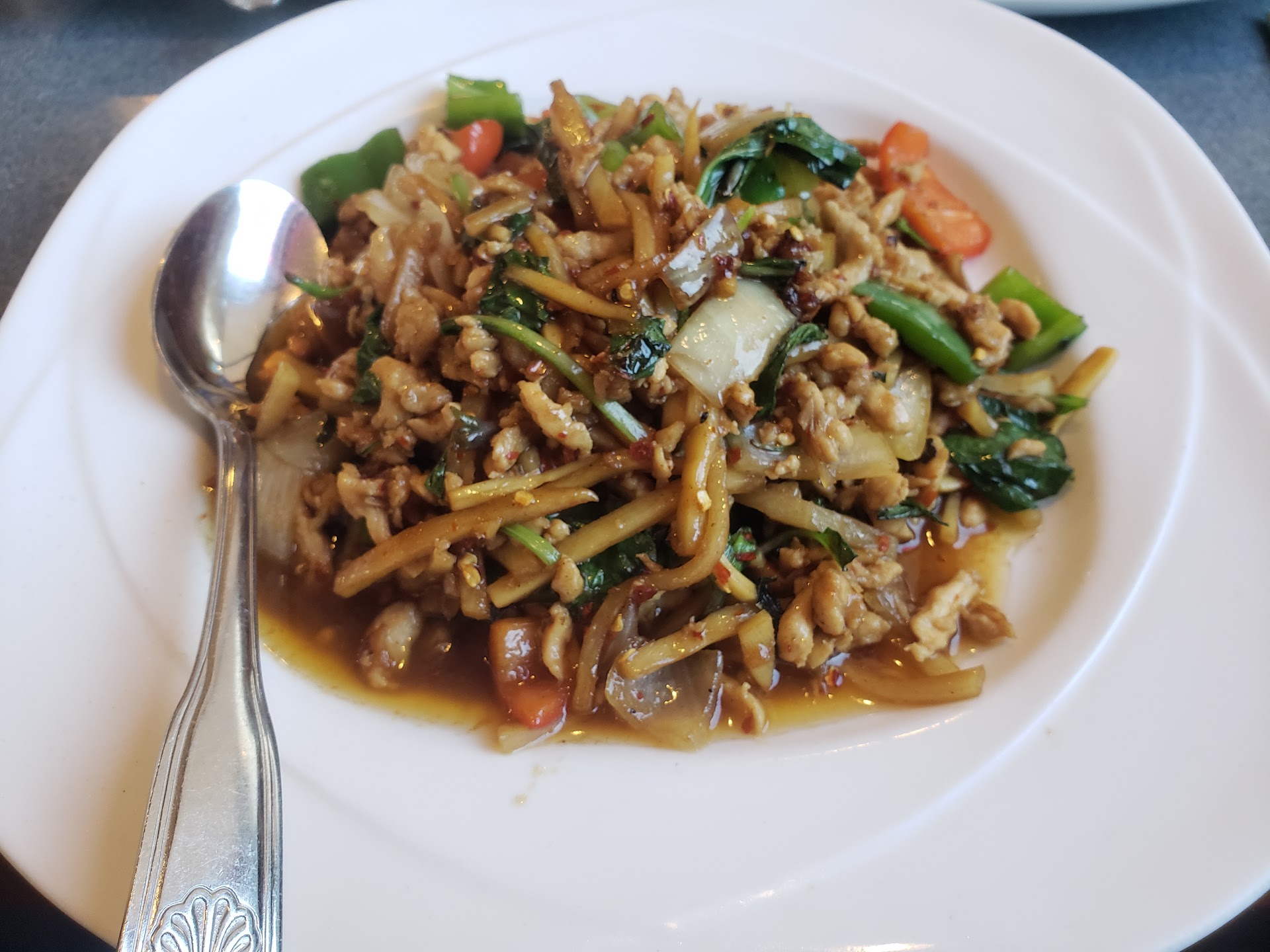 Read moreI love a Spicy Thai Pad Krapow Gai (ŕ¸ŕ¸ąŕ¸ŕ¸ŕ¸°ŕšŕ¸ŕ¸Łŕ¸˛ŕšŕ¸ŕš) translated as Spicy Stir Fry Thai Basil Chicken. My wife's friend recommended Bangkok Pavilion Thai Restaurant. This dish did not disappoint my craving. I ordered it 5-star spicy, which was deliciously spicy while not sacrificing flavor. The beauty of this dish is that the Thai basil takes all the heat and it enhances the flavor. The chef here capitalizes on that fact while keeping the chicken very tender. They are liberal with the spice and my mouth burned with the effects of the Thai chili, which I love!