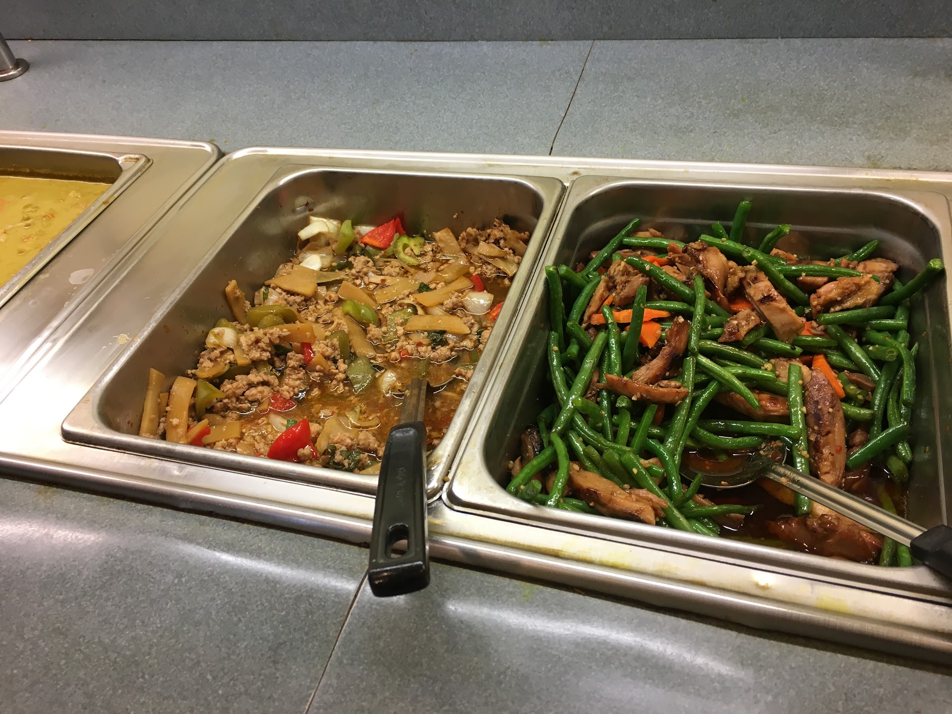 They have a fantastic, albeit somewhat small, lunch buffet served every day. Monday through Friday (11:00 am to 2:30 pm) costs $9 and Saturday and Sunday (11:am to 3:00 pm) costs $14. I went during the workday and itâs always a gamble because I run the risk of overeating and falling asleep under my desk. But itâs worth it! While their buffet could be considered small to the ubiquitous and typical Chinese buffet, they pack a punch of flavor with their offerings and you may find yourself eating the same thing in one sitting. Personally, I always start and end with the Chicken Grapow; a stir-fried minced chicken in a basil sauce with bamboo shoots, onions, bell peppers, and a good amount of spice. They have other meat-based and vegetarian options, two types of curries, fried sides (i.e., crab rangoons, pot stickers, and spring rolls), and a salad bar section. You can also order off the menu at lunch and dinner (no buffet at dinner).