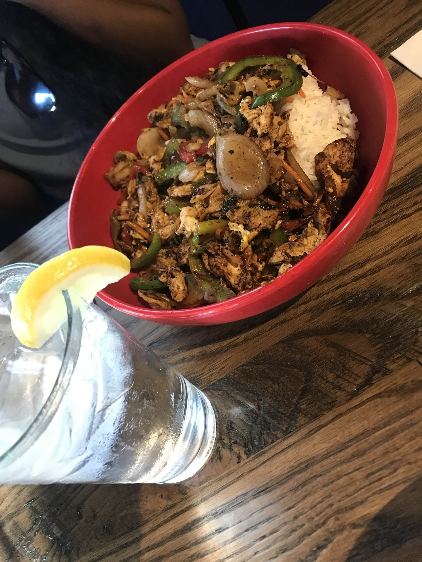 Although the food is absolutely delicious here and the service was great, today bd's only gets a 2 star rating because of LACK OF PROPER CLEANING AND DISTANCING METHODS DURING COVID. As we were preparing our bowls and as we were seated and eating, we noticed that people are not staying 6 feet from each other (many, including employees, are right on top of each other at the food prep station, at the cooking station, in the kitchen area, etc.), not seated at a proper distance with tables between, and tables and chairs in the dining room are absolutely not being cleaned.properly. The food prep station was also not being cleaned properly, nor were guests being required to wear gloves during prepping of their own food, although we did that. I also noticed that the employees who were preparing other people's meals at the prep station did not change out their gloves, touched the same tongs and ladles everyone else without gloves did, and were carrying the food bowls to the cooking area with a thumb down in the food.
