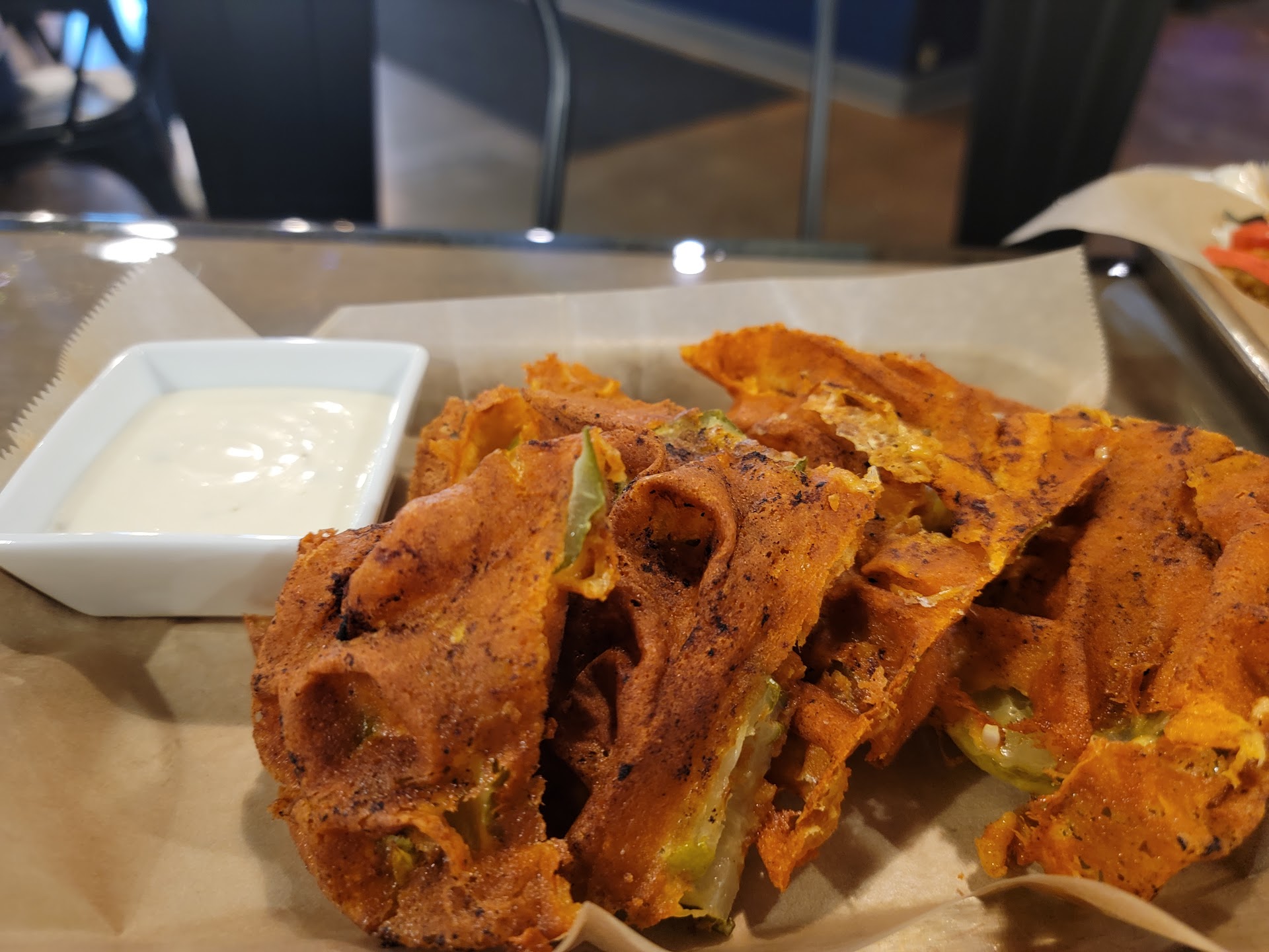 Ā Ā Ā Read moreWAFFLES!! WAFFLES!! WAFFLES!! Chicken & waffles! cookies & waffles! corn dogs in waffles! WITH ketchup! (Might be catsup) salad on waffles! Vegan waffles! Carnivore waffles! VEGAN CHICKEN & WAFFLES!! Part of me wants to know how this was done. The rest wants to believe there's a flock of vegetablist chickens somewhere. Pop, beer, and liquor, not on waffles! However, this place has found a better pairing for their waffles.. GAMES! GAMES! GAMES! Lots of games. Card games, board games, train games, and even Catan. They have map games and even a table covered in a 3 dimensional landscape so you can watch teenagers make airplane noises as they fly them. They have really complicated games. I assume there are easy ones. Our game picker doesn't believe in them. Which makes the relaxed no rush atmosphere VERY nice. Our waiter was awesome and didn't mind our 2 hour dinner at all. Ok, I was the waiter. They make the food, but like the games, you have to go get it. It's a reasonable trade, though. This is one of the best places in town to eat. The food is good. The menu is surprisingly diverse. The atmosphere is awesome. It's games and waffles. How is that not going to be an...