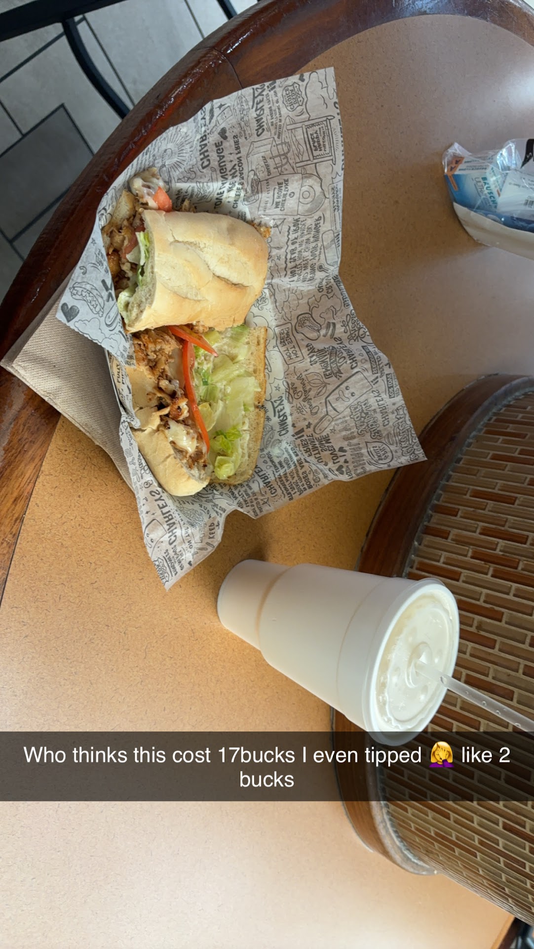 Read moreGot the philly steak, was alright. Tasted a bit dry though. Also was a bit cold because the last employee on theblime didnt know what she was doing and kept getting confused so it ended up sitting. Also drinks are overpriced, $2 only to have it filled all the way to the top with ice leaving almost no room for soda. Would not recommend.