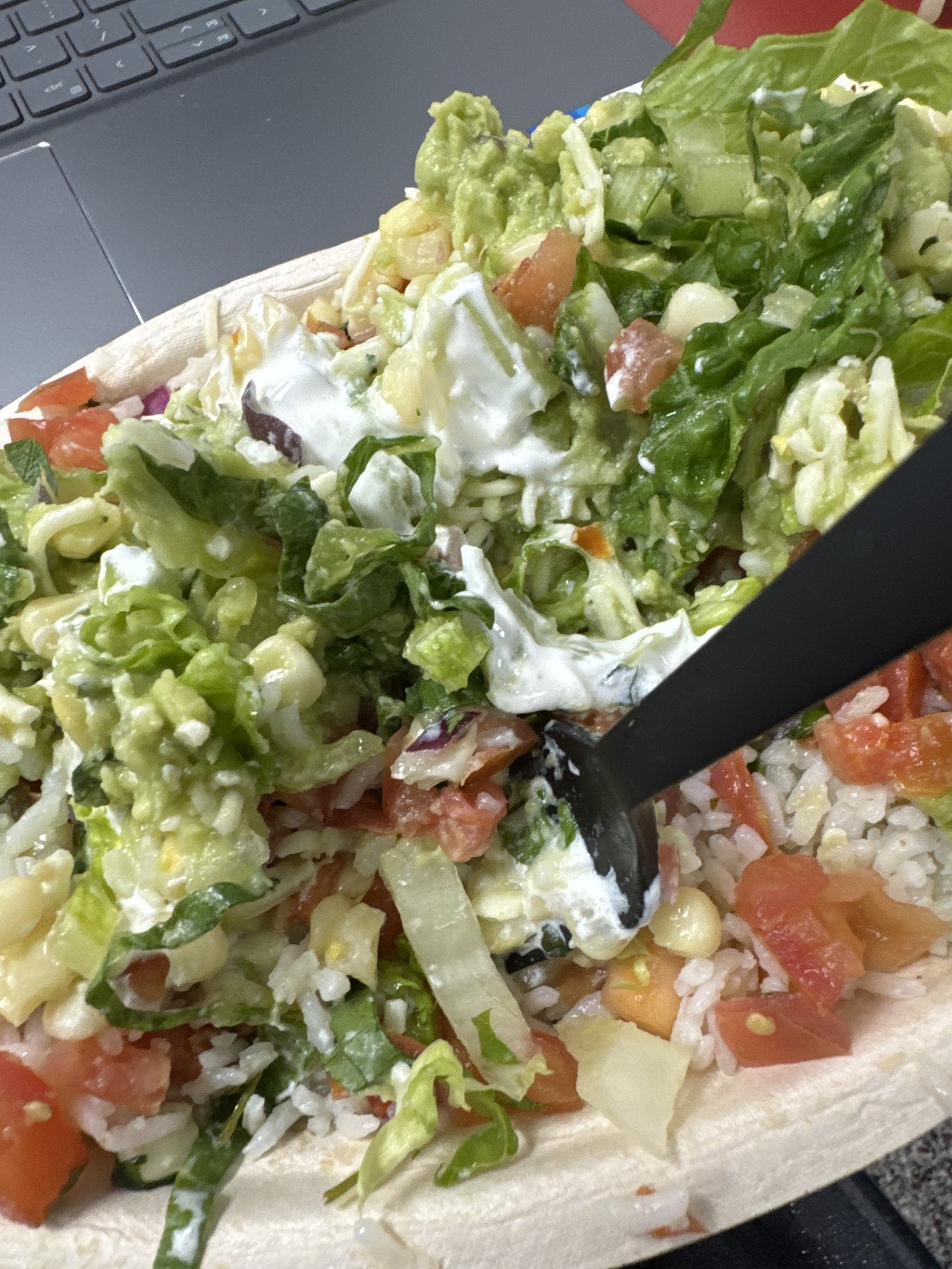 Updated review: I hadn’t been to this location for years. 6 years ago I gave them a good review but my old review didn’t match the experience I had tonight. First, I walked in, and no one said a word. Pretty sure they use to greet customers. If that would have been the only issue I wouldn’t have felt like updating this review but that was only the beginning. Everything seemed okay until I got home. I held the handles of my bag and started to carry it up my sidewalk when suddenly the whole bottom of the bag ripped out and everything fell out in the ground. Fortunately the lids were on tight so no food spilled out of the containers. As I picked up the containers, I found that the containers bottoms were soaked and felt like they would fall apart any second. I managed to get the food inside and dumped the bowls into my own bowls so my family could eat them. That wasn’t great but then I was told to bring a knife to cut the guacamole. I assumed there was a small chunk that just hadn’t gotten smashed all the way but unfortunately, that wasn’t the case. I stuck the knife in and struggled to cut the chunk which I discovered was an entire half of an avocado (pictured below). The last issue came when my husband dipped into the queso and his chip hit something hard. It wasn’t anything gross…just a stray bite of steak? that shouldn’t have been in there. It’s been a while since I’ve eaten at chipotle so I’m not sure if the portion sizes have been drastically reduced always or if it was just this restaurant but our servings were about half the size of the ones I use to get from Chipotle. The bowls were made up of about 90-95% rice with the other ingredients being the remaining 5-10% of the bowl. Overall, it was a terrible experience and I’m so sad to find this location has gone so far from the wailing it had before. I feel like the whole avocado sounds like something someone would make up but I promise, I didn’t make it up! It seems almost like a prank or an angry employee.