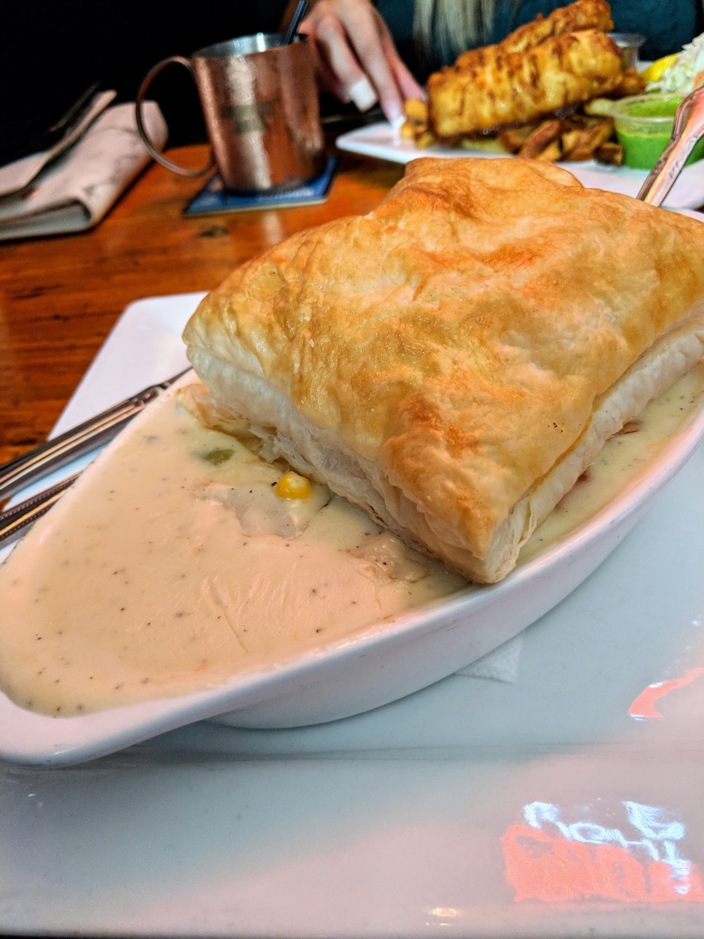 When we go back, there's a fisherman's puff pastry pie on the menu that piqued my curiosity. Our two entrees came to thirty bucks with tax, no drinks, before tipping. Burgers and sandwiches were a few bucks cheaper, and I believe the special was $25 for a 12oz prime rib.