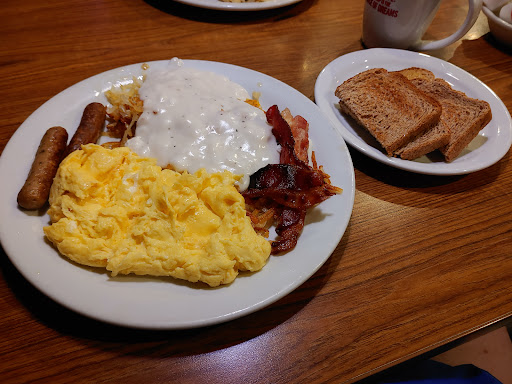 Ā Ā Ā Read moreDowngrading previous high grade...the place has gone way down from being one of our favorites for senior breakfast food. Senior omelet was scrambled eggs cooked on flat grill, folded, sprinkled with cheese and served on a bed of overdone bacon pieces mixed with hash browns, no sign of sausage that was requested. Nothing inside the folded eggs. Men's bathroom: toilet in the only stall was clogged with toilet paper and feces in urine and water mix.. Manual flush was unsuccessful at clearing the clog. Bathroom sink faucet is very corroded, with metal eaten away. Functional, but had dirty areas around it. Obviously new waitress had to be called back after serving us drinks to provide silverware & paper napkin, and blamed the lack of utensils on another waitress (who had graciously seated us when our waitress was befuddled with the cash register/card reader for another customer). Entryway appearance is one of faded glory. The kick plate at the inside front door has badly-peeling paint exposing raw wood, giving the appearance of nobody caring about the appearance. The ticket left on our table has instructions for me to hand print tip amount, add to a total and present to cashier (manned by our waitress). The cash register has screen a requiring the customer to enter the tip when paying by credit card. She didn't know the ticket asked for tip also nor did she know why. I guess I'm expecting too much. My wife said her senior scrambled eggs were not as good as previous visits.
