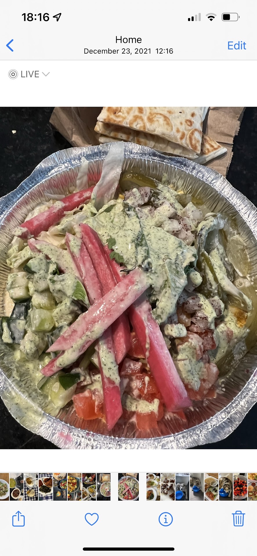 Adding two photos for context. One is from Dec - back when I loved the food and you got toppings, especially the hummus. The second photo with the disgusting oil ring is from today. There is barely a layer of hummus covering the bottom and the toppings are noticeable shrunken. Itās half the size of the other bowl! I...