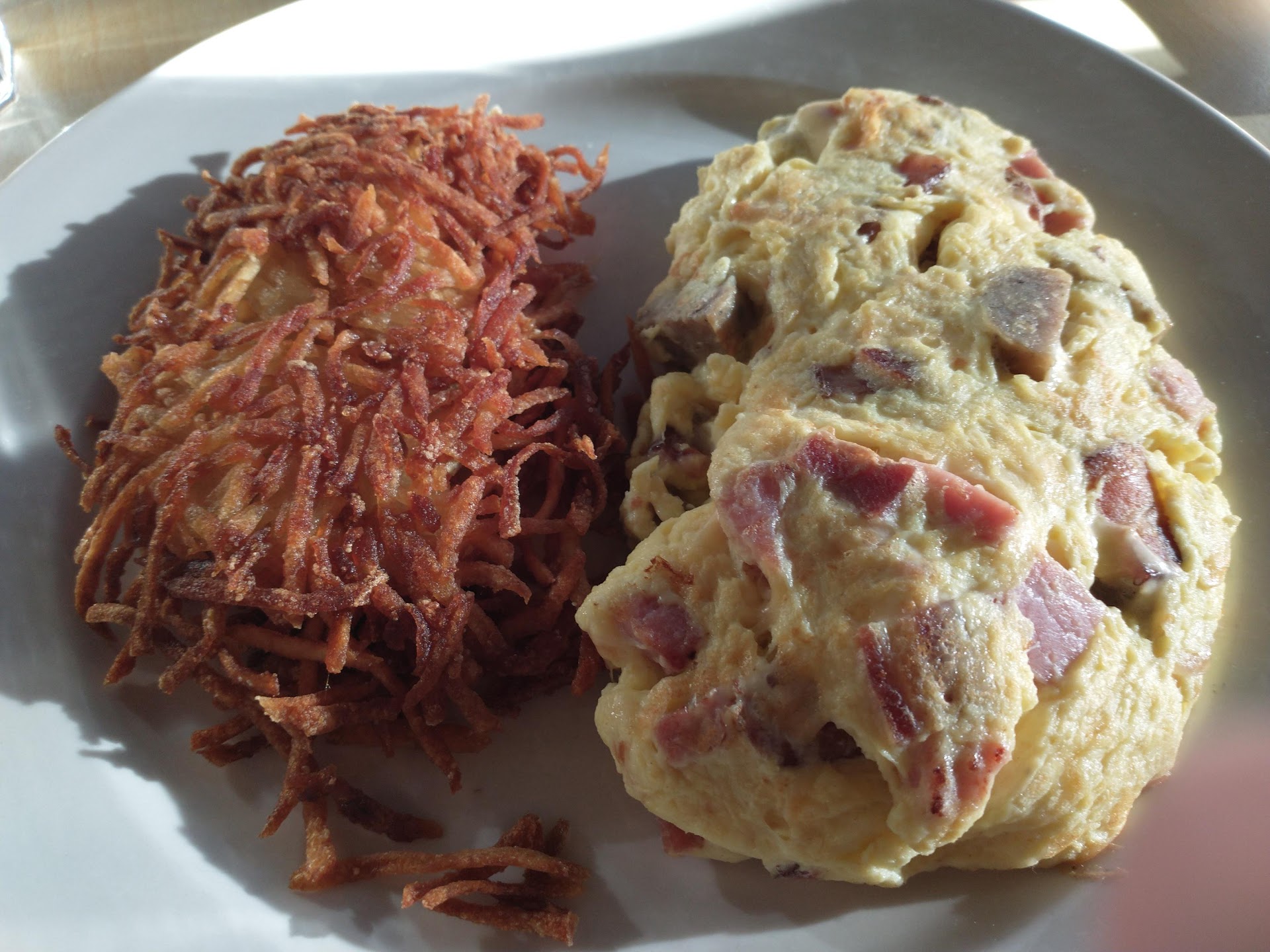 Read more5-star service, 4-star ambiance, 3-star food. To be fair, I didn't get the self-acclaimed "Flapjacks," and my dining companion says the pecan pancakes were quite good. I went the "and more" route with the Scrambled Lox and Onion. It was ok, fairly monotone in flavor and a touch greasy and salty, but good enough that I still ate all of it, which was quite a hearty portion (way more than 2 scrambled eggs). Actually boxed my side of fruit (small plate of watermelon, pineapple, and cantaloupe—bigger than a typical small fruit side dish) to go because I was so full. Again, our server was perfectly attentive and took good care of us, regularly topping off my cup of coffee.