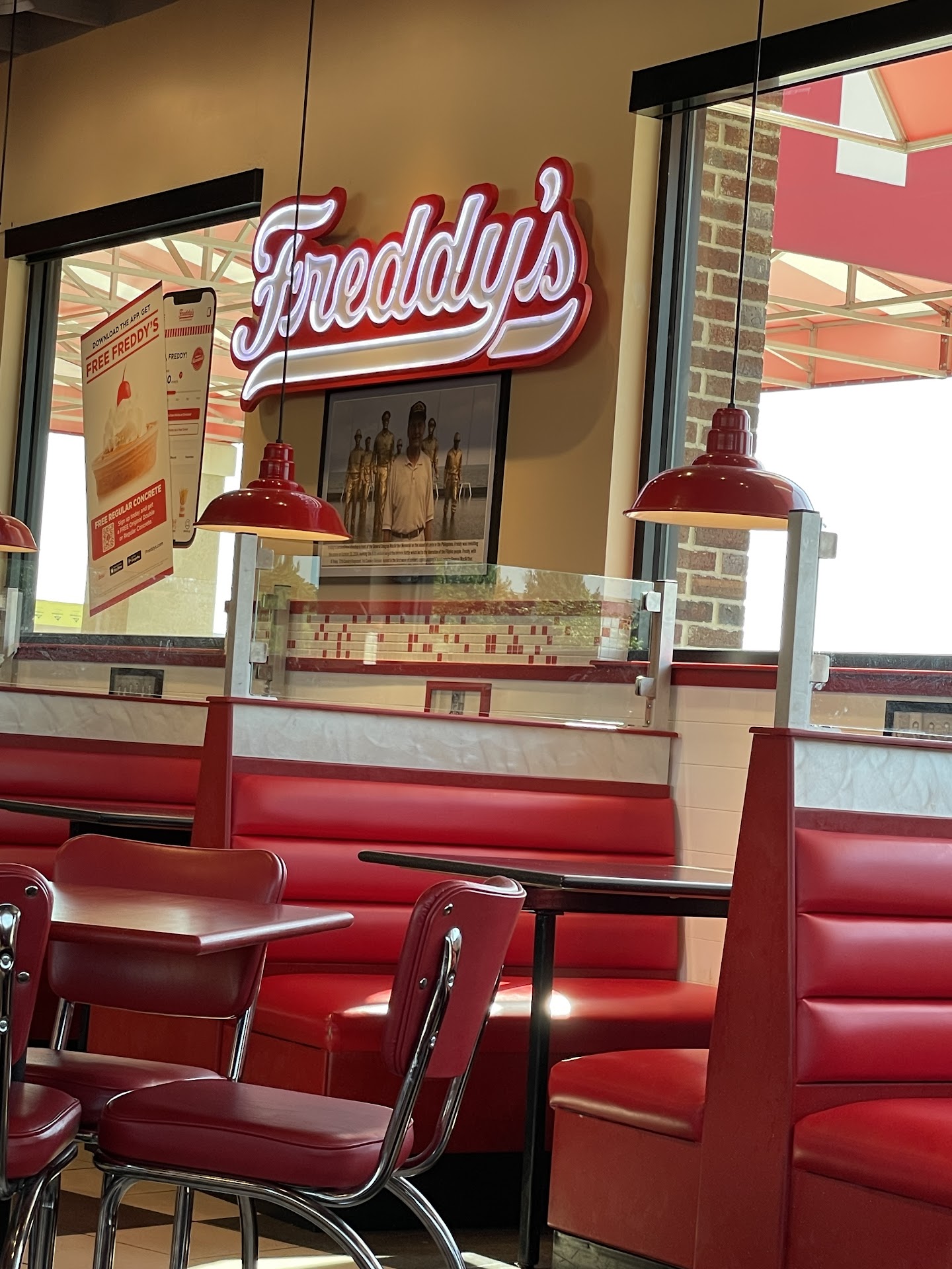Read morePlaced our order at the drive thru, added one item at window with relatively little wait. Staff asked us to pull forward to parking lot and they would bring food out. Waited 18 minutes with no appearance so entered restaurant (mind you, two kids in the car, one of which we had to convince to go to Freddy's and my arm is currently in a sling so kind of the point of a drive thru experience). Took three staff members to actually engage with me and then, lo and behold, our food was sitting on a cart in the middle of the kitchen with shake and concrete mostly melted and food cold. Rather than deal with delays at this point with hungry kids and nursing wife at home, took the food and microwaved it. Definitely not a premium experience considering we have Tay's as an alternative that's closer and the same price for a FAR better food and quicker service. Not living up to the whole "Enjoying great food without a long wait doesn’t mean your meal has to be cooked before you order it." as listed on their website at all. More like "Enjoy cold food and melted ice cream after a long wait because we forget about you." Don't...
