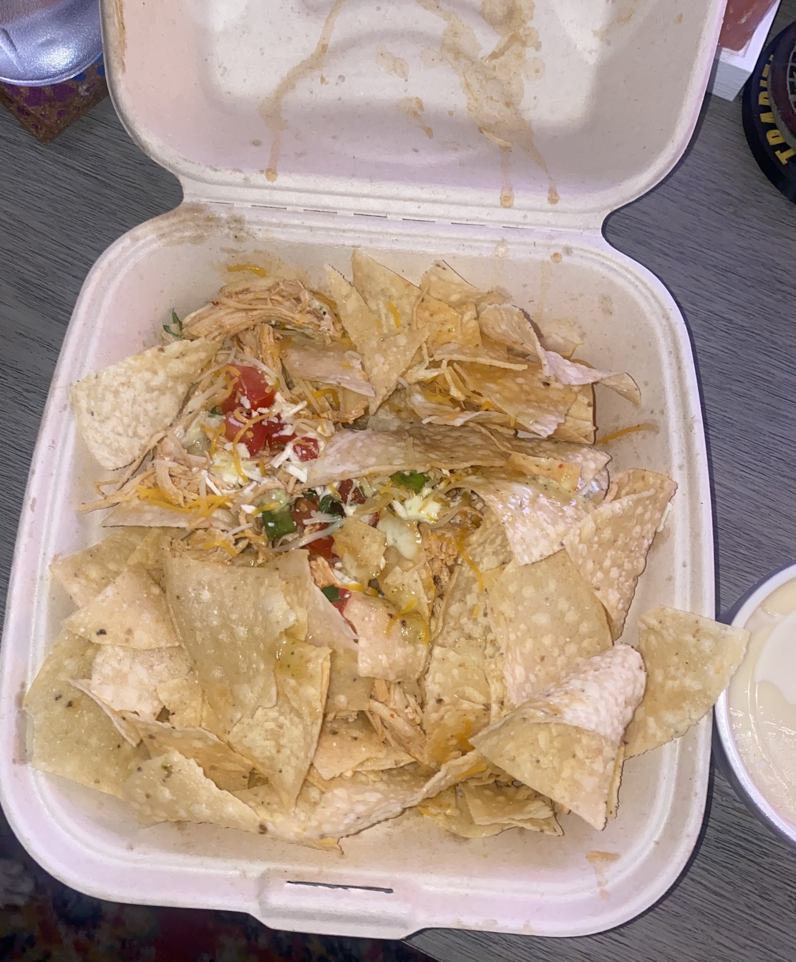 second visit was a to-go order at lunch. wife wanted chicken salad with ranch. they did not include the ranch. maybe i shouldve checked better, but i assumed (wrongly) that it was in the salad box. it was not. i simply had 3 tacos; chicken, pork and brisket. ended up with a ground beef taco in the mix and no pork. it was still good, just not what i ordered. also all 3 tacos were roughly half the size of the tacos i got the first visit which was dine-in.