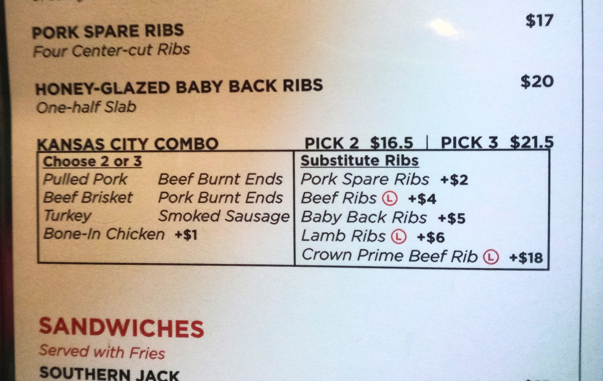 Before I write this review, I wanted to give the manager a chance to explain. I told my waiter to call on the manager. When I asked a manager about the cooking techniques and the temperature of the food, he acknowledged that the food-brisket, barbecue ribs, and cheesy corn, should be all warm to hot. I told him that the brisket was cold. The cheesy corn was even colder. He further explained that the ribs were dry up with seasoning prior to placing them directly in to the smoker. No brining or hours of marinating. Just seasoned and cooked directly in the smoker for at least 3 hours. Therefore, the meat basically get its flavor from the dry rub seasoning and slow cooked in the smoker for 3 hours. That might be the Kansas City style in terms of barbecueing their meat. That explains why the barbecue ribs lack flavor. I have to give them the credit for being so tender though.