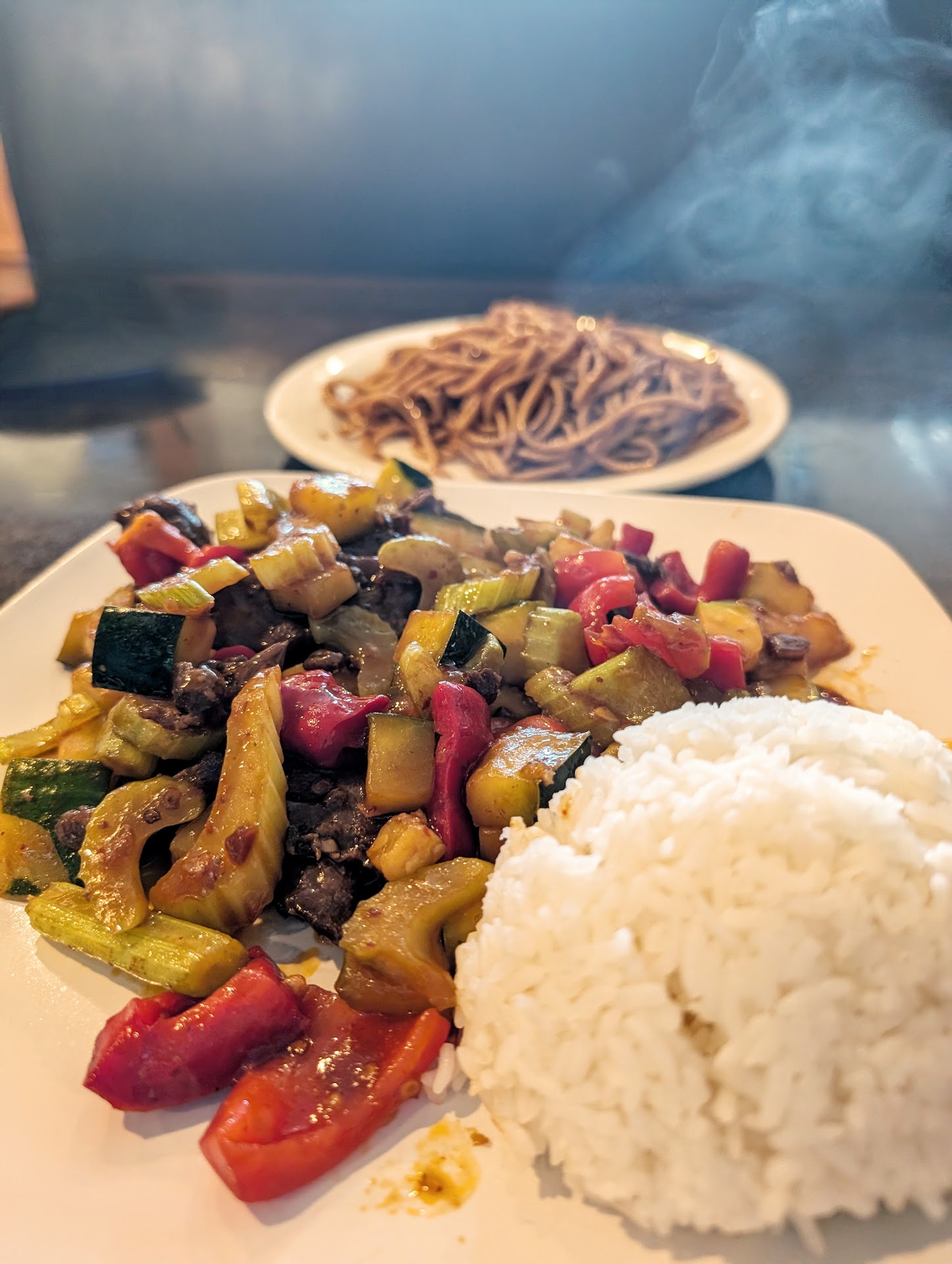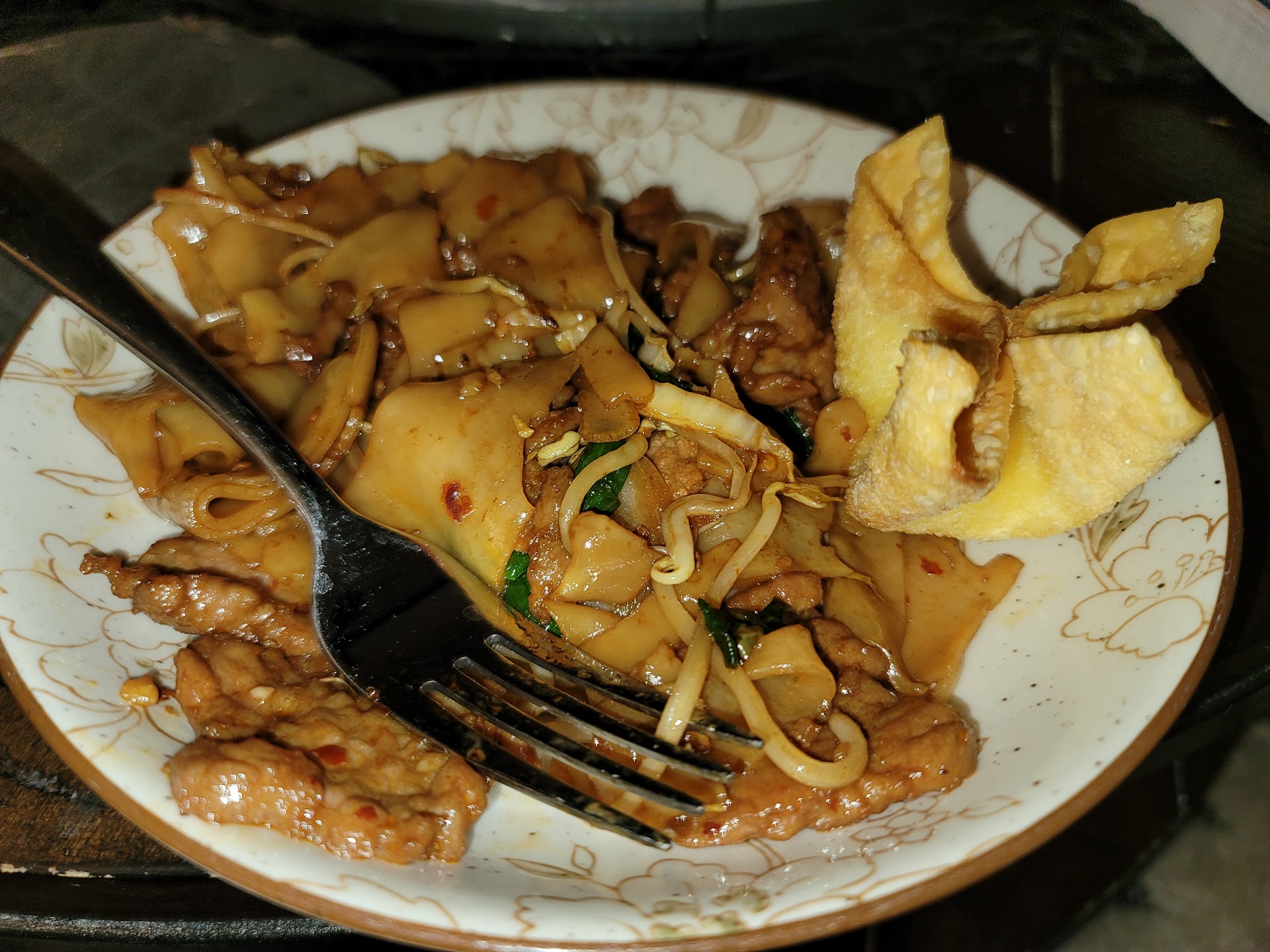 Last night, I had vegetable ho fun. Ho fun is a flat, wide, rice noodle. There was no shortage of veggies in this dish.