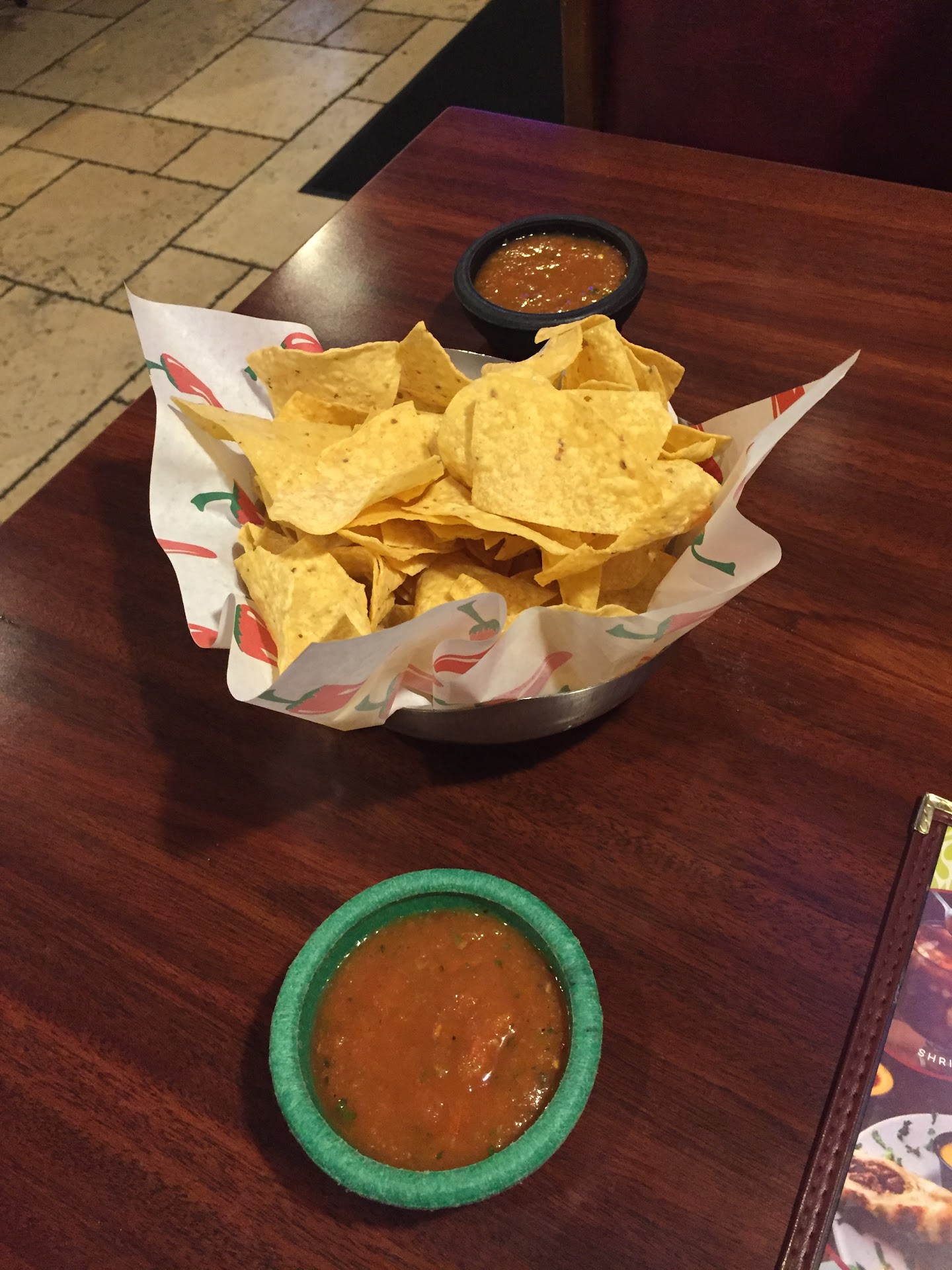 First of it was right around 7:10 pm and I expected a wait which was around 10-15 minutes. We got in to our table and immediately we both noticed chips and salsa are already on the table! I didn’t care for that especially in the times right now with Covid and who knew how long they had sat there. So we sit and wait and about 15 minutes after sitting down and staring at a basket of chips and 2 bowls of salsa our waitress arrived to take our drink order. I think they should bring the chips and salsa when they bring you your drink, since we had never been there I didn’t know how spicy the salsa was and I didn’t want to take a chance. My wife did however and it was way to spicy and she had to wait about 5 minutes to to get a drink. Our waitress was very nice and she made some great recommendations. It just took forever to get anything. I thought it was weird that it took less time to get our food than it took to get our original drink order!