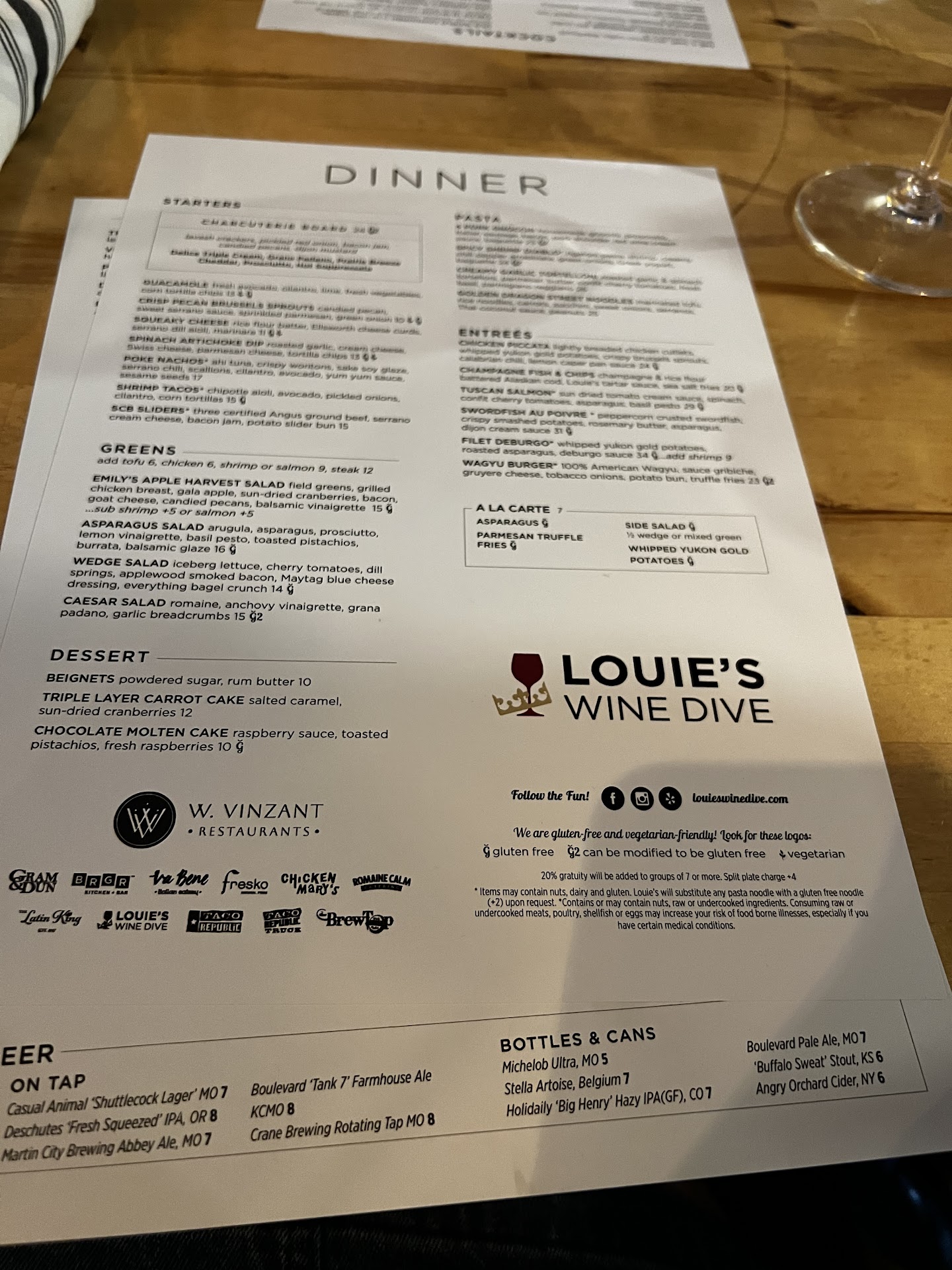We ordered wine and the waitress was kind and attentive, but the entire vibe was awkward. We thought they did flights of wine which they do but not on weekends as it overloads the bar tender (which doesn’t really make sense as wait staff can pour wine). The only reason this was a bit of an issue is the birthday girl who was in the wheelchair also can’t eat so we were there for the flights of wine which were unavailable.
