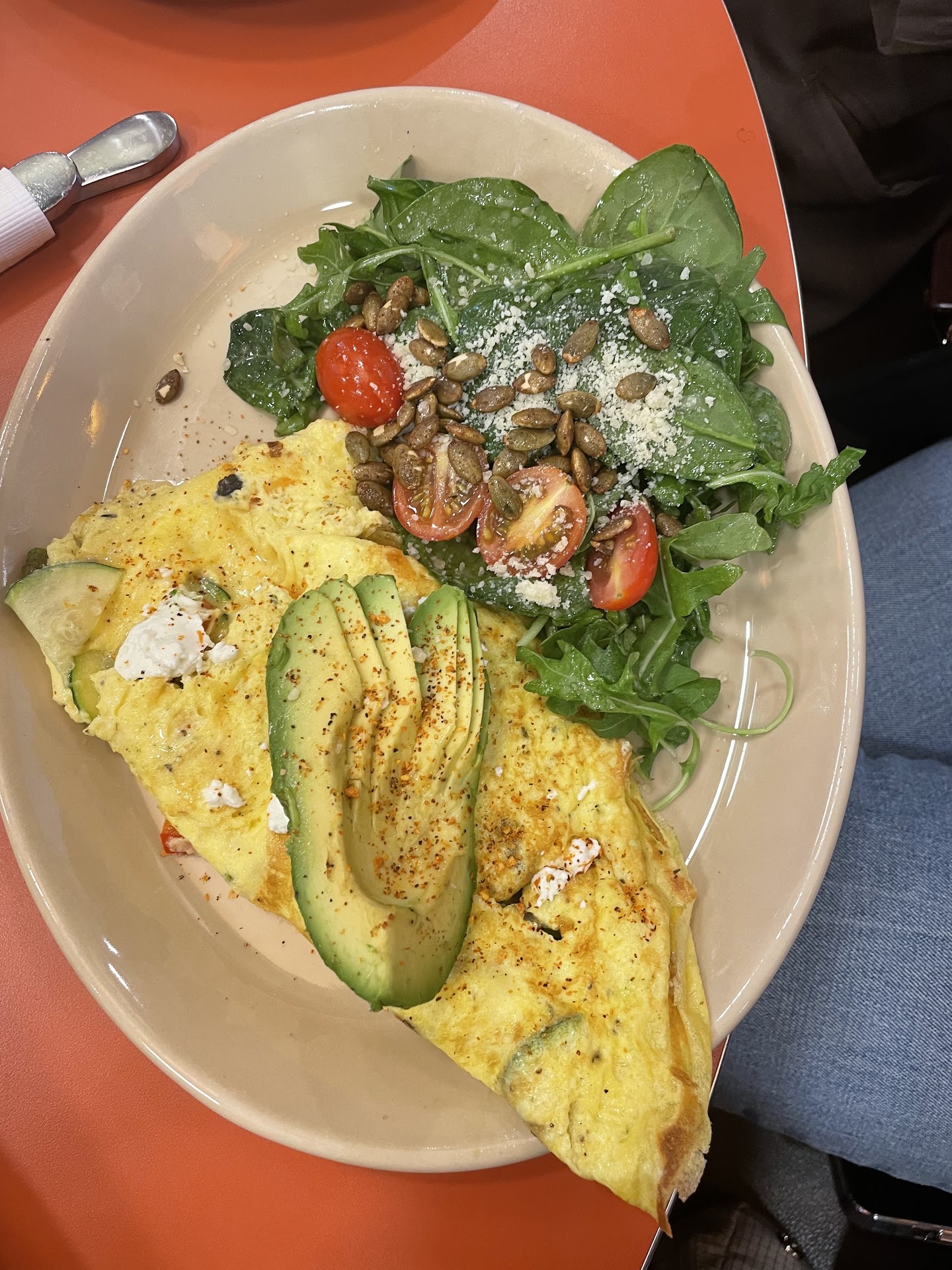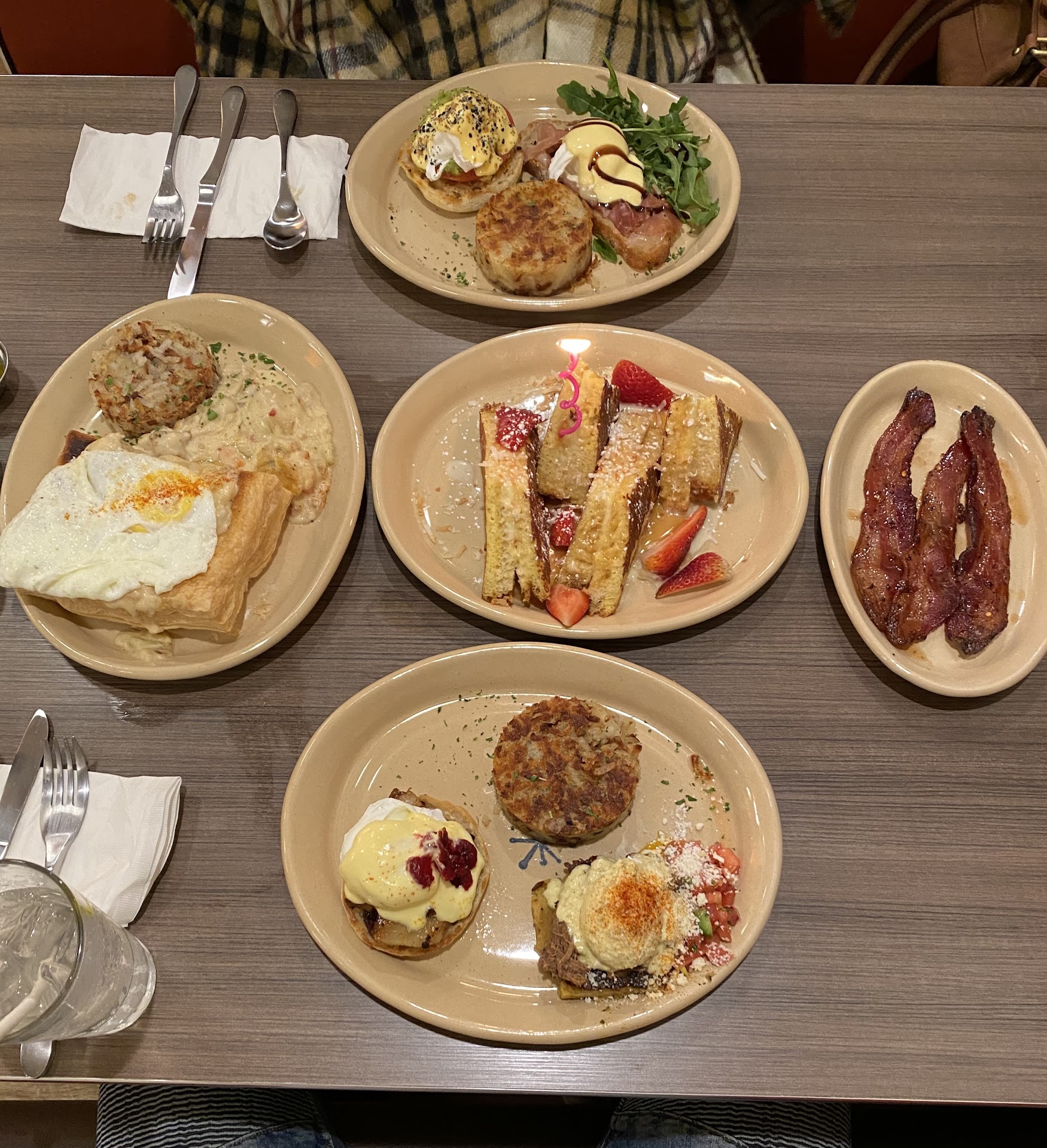 Our poor waitress offered us a free pancake coupon but we left it with our payment because we...