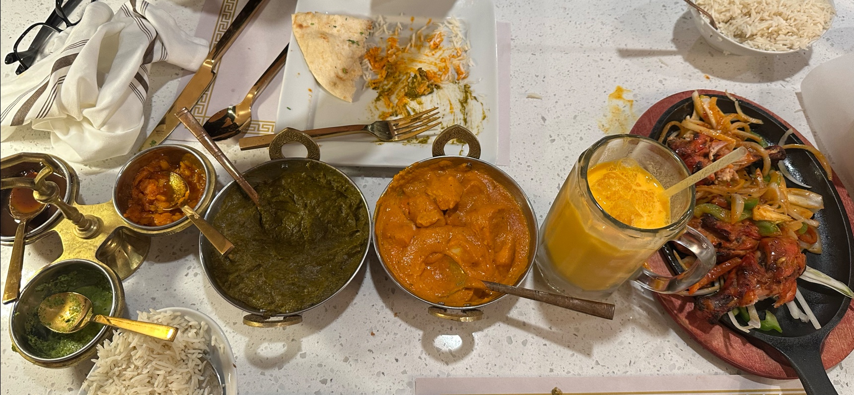 Ā Ā Ā Read moreThe restaurant is very pretty, as well as the serving dishes and gold utensils. It was extremely clean! The food was definitely good, but I agree with some other reviews here saying it lacked a little depth of flavor. If you are not picky about your Indian food, or have never had Indian food before, their buffet would be an excellent place to try! The butter chicken was on the sweeter, tangy side, which was good, just not my personal favorite style. The chutney served with the samsoas were just okay. The saag paneer came out as chicken paneer, which was fine since we are not vegetarians, but a little worrisome as Indian cuisine is well known as a generally safe option for those who are vegetarian. The saag sauce was excellent!! The dal soup was one of the best I have had as well. The service was sadly lacking. Iām not sure if it was due to being short staffed, we saw two servers while there and there were 6 tables of people during our time there. While both were friendly enough, the pace of the courses being brought out was off. My drink was forgotten and I didnāt get it until almost the end of the meal.
