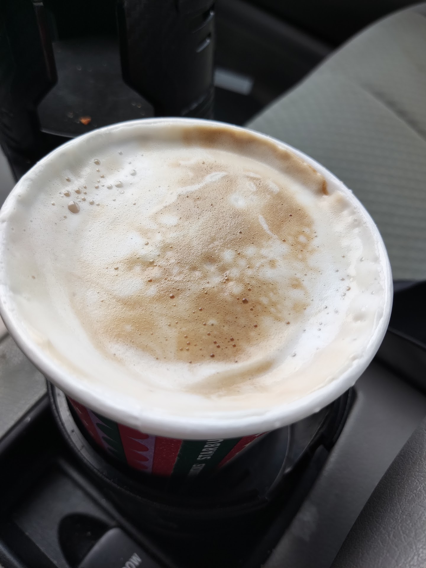 I walked to the drive through window and asked the barista to hand me my order and she told me I had to wait in line on foot with all the other cars.