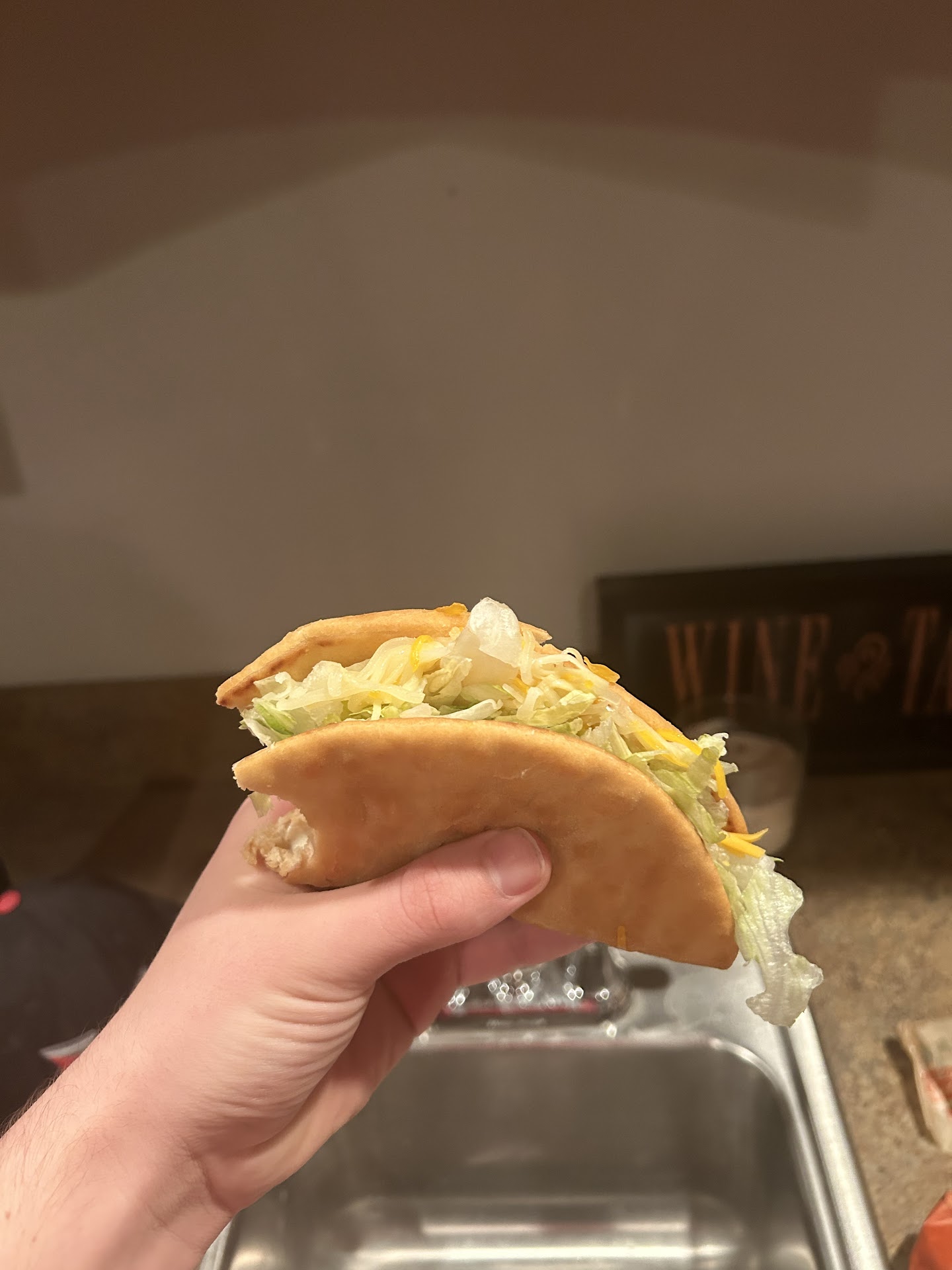 Got the crunchwrap and chips with nacho cheese sauce. The crunchwrap was fresh out of the oven and everything was actually hot. If youāve had experience with fast food before, having hot and fresh food from one is actually surprising.