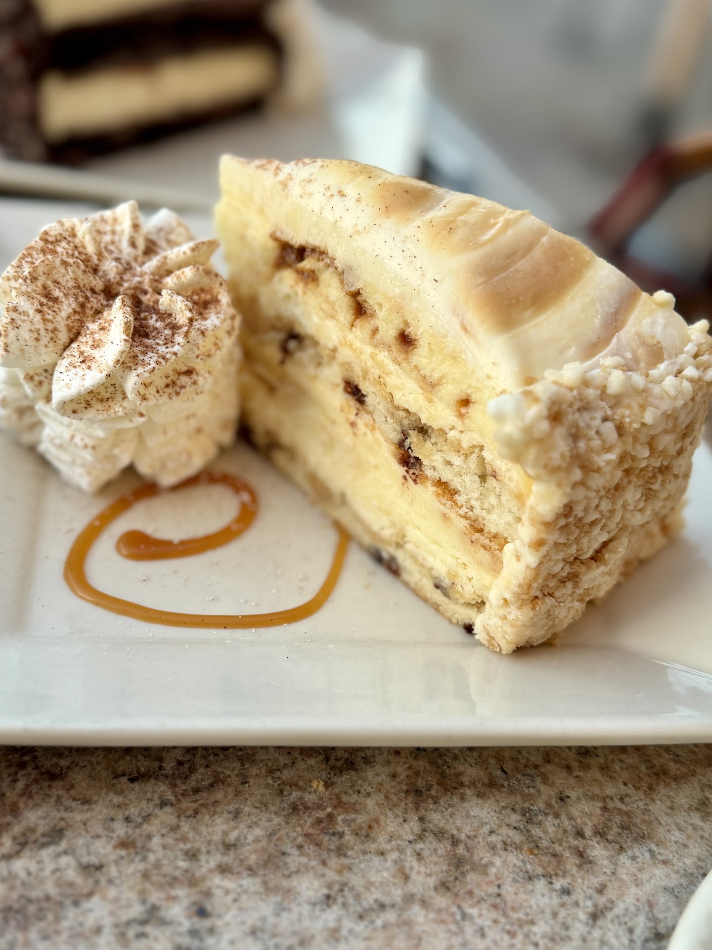 Read moreMy sister and I were the first ones to arrive, we told the hostess right away that we were waiting for a third party and even inquired if he were there yet, which we were told no, he wasn't! After being seated I left to go wash my hands and when I returned I was looking at the menu, as our waiter, sorry, I didn't catch his name, came to inquire about my drink; I was already looking for, but only saw the specialty drinks not the regular drinks/ lemonades, teas or sodas, he was very impatient and kinda huffy/ rude, standing with his hands on one hip and the other on the wall while waiting, then he starts recite them for me also in a huffy tone as well, my sister already had her water, so notably this was at least his second trip to our table, but that doesn't give reason to have an attitude while waiting for a drink order! It was after the lunch hour between 130-2, so they weren't that busy! I ordered the Louisiana chicken pasta and it was just OK, I could taste the oil more than anything, my sister had the chicken medairra, excuse the spelling, and my son had the Mac and cheese burger as he wanted something interesting, both said their food was good! No cheesecake, cause we had purchased it; the RED VELVET, from take out, the night before, and I will say it was DELICIOUS! Water was refilled repeatedly, but not once was I asked if I wanted anther lemonade, and my glass was off to the side, he even glanced at it a few times! I was visiting from out of town, for my son's 40th and REALLY WASN'T IMPRESSED! I was a server when I was younger and would have NEVER acted this way! I still tipped over $11 on a less than $40 check! This was my first dine in experience from any CHEESECAKE FACTORY and I was VERY DISAPPOINTED in my experience! Sorry for the...