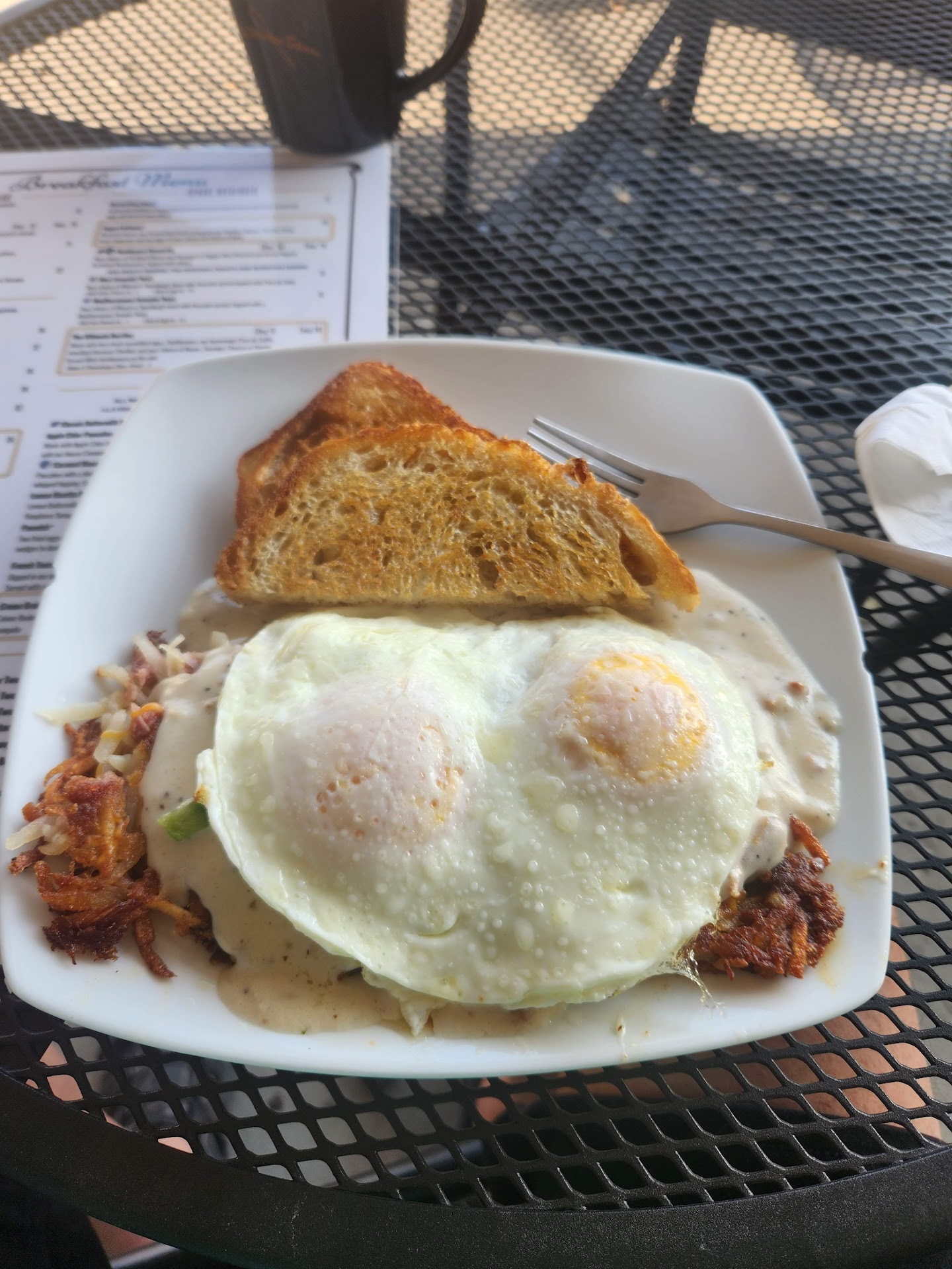 The sourdough toast I ordered was beautiful to look at but was so soaked in butter/oil from the grill that it had a slight bitter taste.
