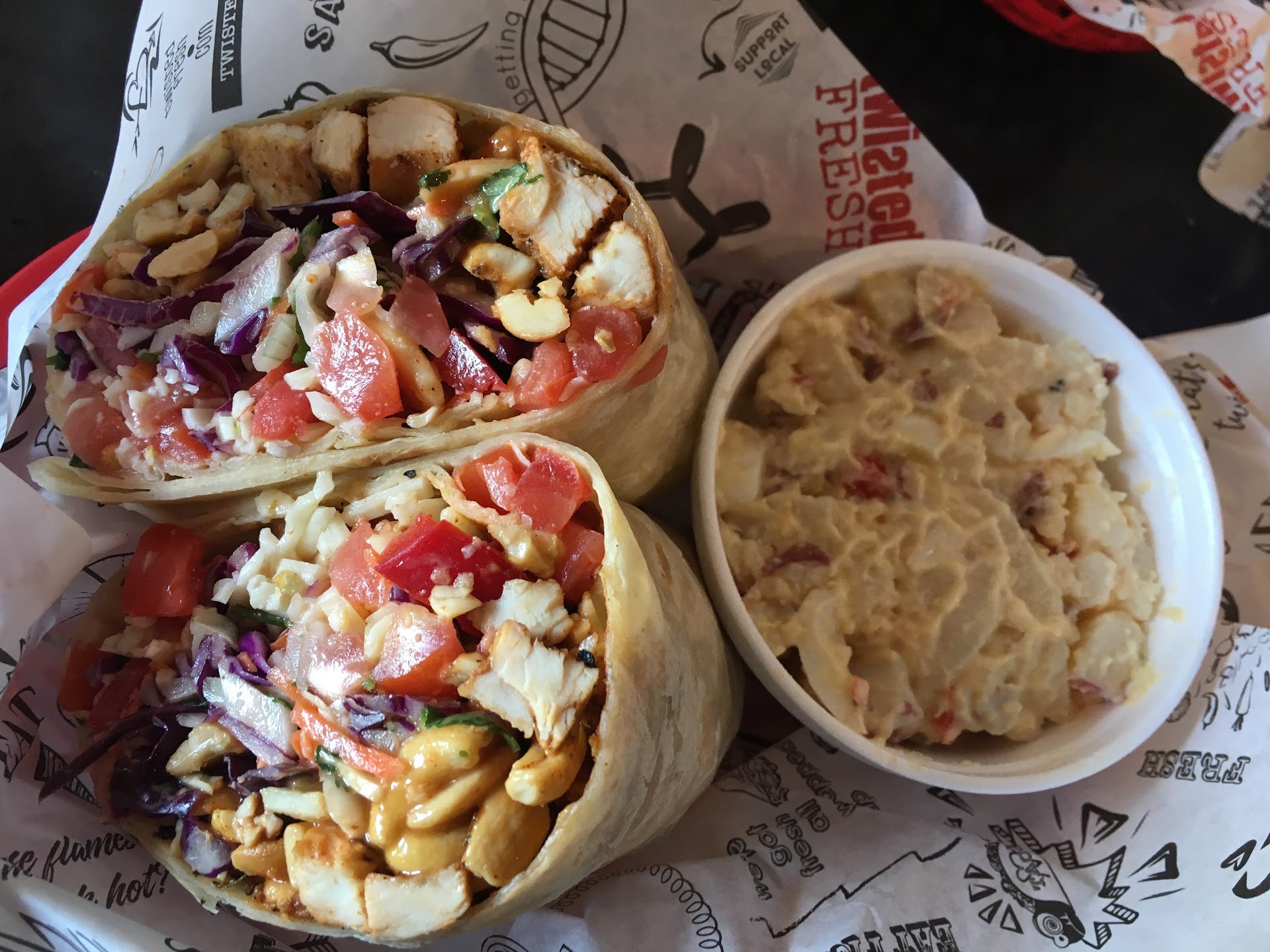My only recommendation to improve upon a very-well executed dining experience would be to let patrons add more of their delicious, house-made sauces and salsas (they have over 15 to choose from). They had Chipotle and Habanero sauces sitting out on a counter to add spice, which is great, but I would opt for more sauce akin to the respective wrap. Each wrap, burger, or sandwich comes with a side. We ordered chips (for the kids), broccoli salad, potato salad, and their seasonal side—which was an Asian green salad. The sides were fine; they make a fine accoutrement, but the stars of the show were the wraps—as it should be! Go by yourself to grab a quick, healthy bite. Go with buddies, a date, family, or a large group. They even cater and I’ve had their catering, which was how I learned about them, and it was delicious. I hope they open more in the KC-area and grow. With the downfall-and-slow-recovery of Chipotle, Twisted Fresh found an opening to provide a superior alternative with novel and...