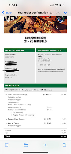 ORDER TIME: During certain hours and on some days they can be very busy with call in orders and dashers pick ups. So be patient and understand that you are getting Wingstop and so are maybe 20 other families..