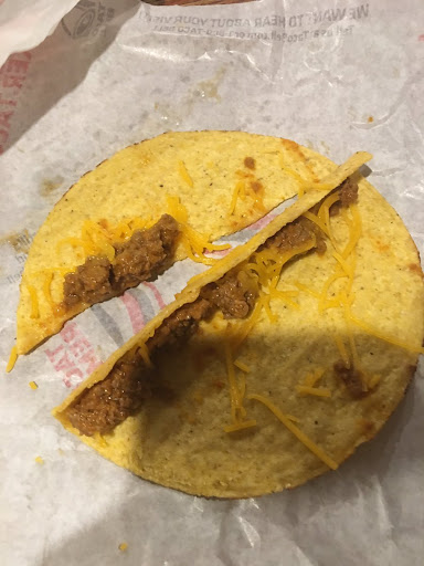 Read moreThis particular location seems to get my order right only about 1 out of every 5 visits. If my daughter didn’t like this place so much and request it often, I wouldn’t come here at all. Last night, I went through the drive thru and saw that they were featuring their nachos this month so we ordered some only to be very disappointed. They actually got my order right this time as far as no items were missing surprisingly but when I got home and saw that the nachos didn’t have any meat on them and they had this big blob of refried beans right in the center, not spread out like they should be, a little bit of cheese and sour cream and a pile of tomatoes, I wanted to go back and tell them to remake them because they were so pathetic looking (I am posting a pic of them on here) but who wants to go through all of that after working all day and just wanting to eat and relax before work comes again the next morning?!? No one! They advertise these perfect nachos on their menu with a big picture and then the actual nachos that you end up getting look nowhere near like what they are advertising. After a long day, people want to just get their dinner, they want it to be right and decent looking and not have to worry about either taking something back or settling for the taco you got on the side as your meal and being left hungry because the staff can’t put any effort into making your food decent! If it was their food they were making, I guarantee those nachos would not come out looking anywhere near that! With as expensive as fast food is these days, you expect the food to be decent and made correctly. Well, lesson learned...we will never order the...