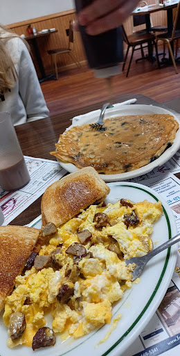 One of the worse dining experience s we've ever had,two orders of steak eggs and hashbrowns,one kids french toast with sausage my son had to eat his french toast with no syrup,we ate steak and potatoes with no steak sauce or ketcup, waitress did not bring these items,as well as creamer and water, and could not get waitress back to our table! Eggs were burnt,toast was burnt and dried out ,could not eat! Ordered steak medium rare was delivered well done,ordered hb xtra crispy all the way through and they were delivered raw! Sent hb back and they were returned slighlty less then raw! Ordered tomato and pin eapple juice and were delivered 3 sips of each in a small tin xan at 1.75$ a pop! And finally were charged 4$ for a glass of milk that was priced on the menu as 2.50! In addition to all this had to tell waitress to bring woman at the neighboring rable a new order of toast to replace the black toast she was delivered! We will def not be rushing back anytime soon! Waitress was pleasant on her mistakes! And...