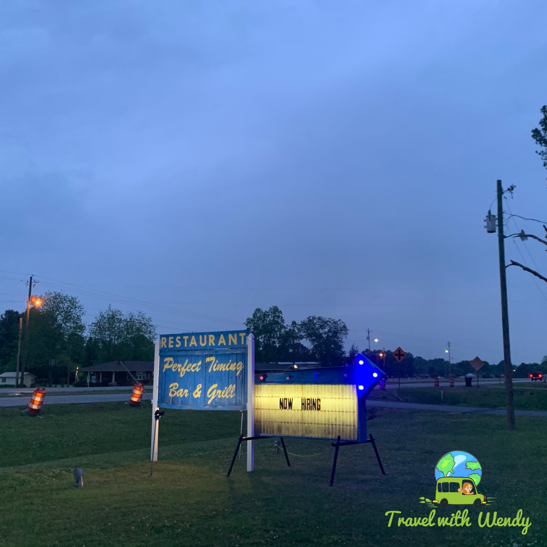 We originally were going to eat there as we had over a hr before our game started but then 15 mins till kick off food still hadn't arrived. We sat outside as there was no room inside and as we don't drink not a fan of watching others do so either, poor choice as the band that day was horrible. Couldn't carry a conversation over the music. As it was nearing time for the game we told them to just make it to go and even then had to wait 20 more minutes by then we just wanted to pay for the drinks and go. We did get our food, funny how mentioning you are about to leave it comes out finally. My father in law eats here often says he never had to wait that long before for food. The food was good but to be called perfect timing the timing needs a bit of work. Burgers and wings don't take a hr to cook. And to top it off was late to our game. After getting to town well in advance. Service was lackluster I get being overwhelmed when having an entire section like a patio to yourself but she had food runners and others helping pour refills try doing it with the entire restaurant and having to do your own dishes so no excuse on not being able to check up on your tables better. It's not all about taking orders. The rest of the staff were friendly aside from the male bartender who couldn't comprehend we wanted to pay for our drinks from our tab not order new ones. I will say the food was delicious and those around us at the game were commenting on the smell of it and watching us eat it , one guy watched my husband eat his wings with a look of jealousy. Loss of stars goes to poor entertainment and lousy timing. Price gouging too because for 3 people the bill was $60 no way should that have been right, $20 for wings when you can get 4lbs at the store for $12 but being the only option on the menu for someone on a strict diet had no...