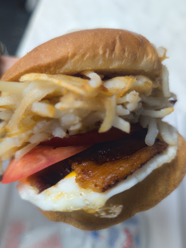 I went through the drive through, the sign lets you know your food is cooked to order and may take a little longer. The person who took my order also cooked it, bagged it and gave it to me through the second window (she was fantastic at every level of service). She let me know the hash browns were home cooked when I ordered the sandwich (which I did place on my sandwich later). Plus I ordered sliced tomatoes. She offered a choice of meats and breads. I chose bacon and bun. When she handed me my food she let me know she packed ketchup, salt & pepper plus serving wear. When I got to work and unpacked, everything was still hot. The potatoes were crispy on the outside and fully cooked and tender on the inside. The potatoes fit perfectly in the sandwich. The sandwich had a soft fluffy bun, thick crispy bacon, a perfectly cooked fried egg, and a slice of cheese. I topped the sandwich with ketchup. The sandwich is delicious! I ate half and it perfectly got me through a busy morning at the shoppe. Plus held me over until I was able to eat the other half for my late lunch. I appreciate the convenience of the drive through, even with the wait; the...