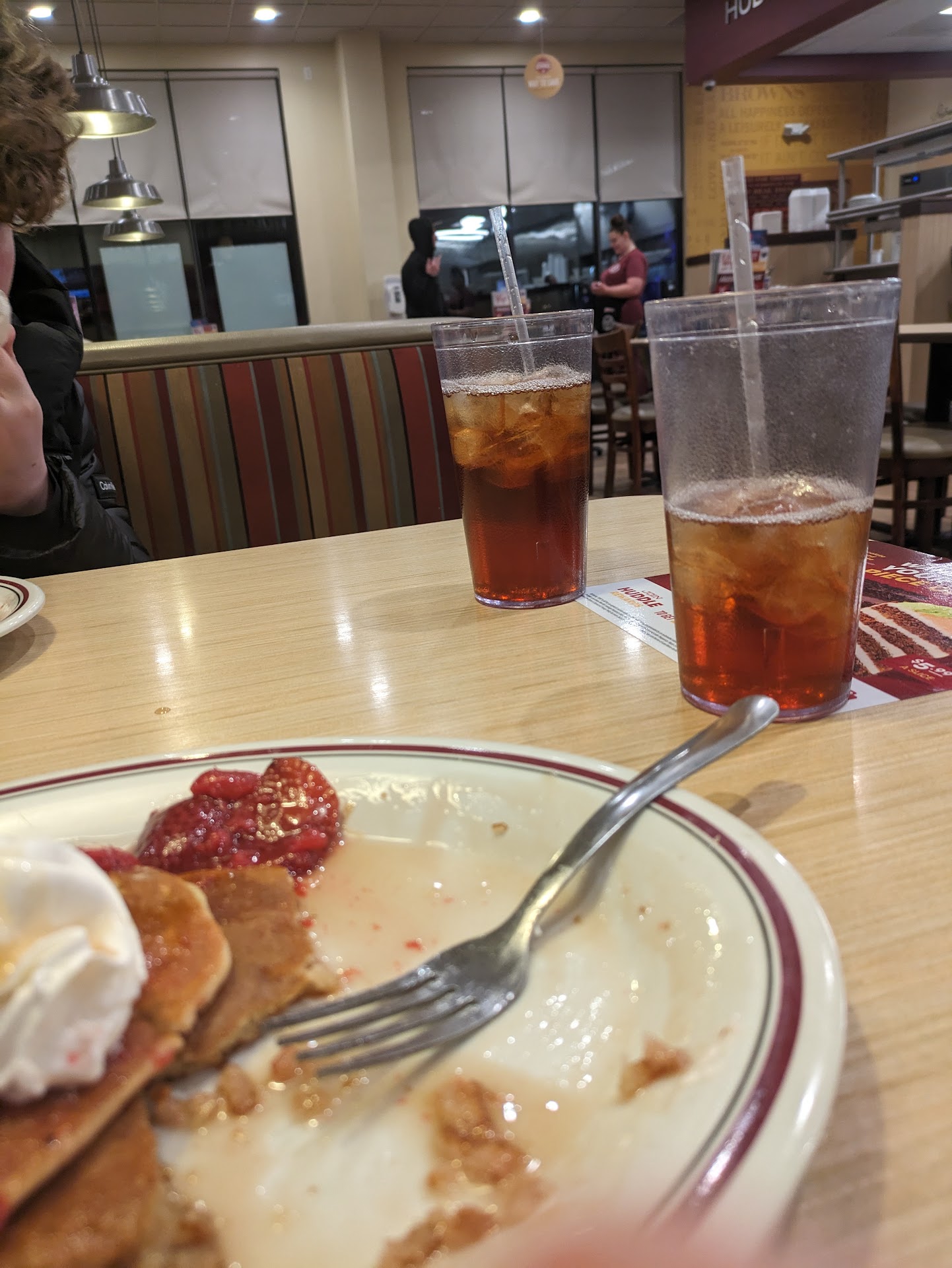 Read moreI donât recommend this place at all. The midnight crew may be the worse there is. We order 3 MVP and a Strawberry waffle platter. All the bacon for each order came out so burnt. The pancake came out doughy and was presented terribly. Portions was not right. Each had less than the other. Motherâs plate was wrong in eggs. Her plate went back. Then they brought her plate back with just eggs no potatoes nothing. The lady that worked next to cook was shady and nasty as I ever seen. She dropped some stuff out of refrigerator. She picked it up and laid it on counter. Well in her gloves she was food prepping it wasnât changed. She looked around to see if any customers seen it. She didnât think you can see what they do by watching to top. She kept working in those gloves touching food. I was disgusted at this point. The cook couldnât get any of order right. Which didnât matter cause waitress left it in pick up area for awhile til she brought it to our table to be all wrong or over cooked temps were cold. Not got food at all. I was against going here since last time was just as bad as this time. This time it was gross not clean and a lot of messy tables. Mother insisted so we gave it another chance. The worse experience. Dirty forks giving to table sat down pancakes and we had to wait til we got up ourselves to find syrup. The restrooms must been the worse we ever had seen. We took our chances with hand sanitizer at table cause we would have had got sick trying to use their facility. Not clean at all. Iâm sure if health department would work at night this place be shut down. Wander how many workers would pass drug test a lot of them seem to be pretty out there. Iâm sure they know all this and still allow to let these workers work. Since no one wants to work anymore. They all blame stuff on others. We go out a lot and so does our family and friends. But after this experience like the past we all agree we wonât go back. Waste of...