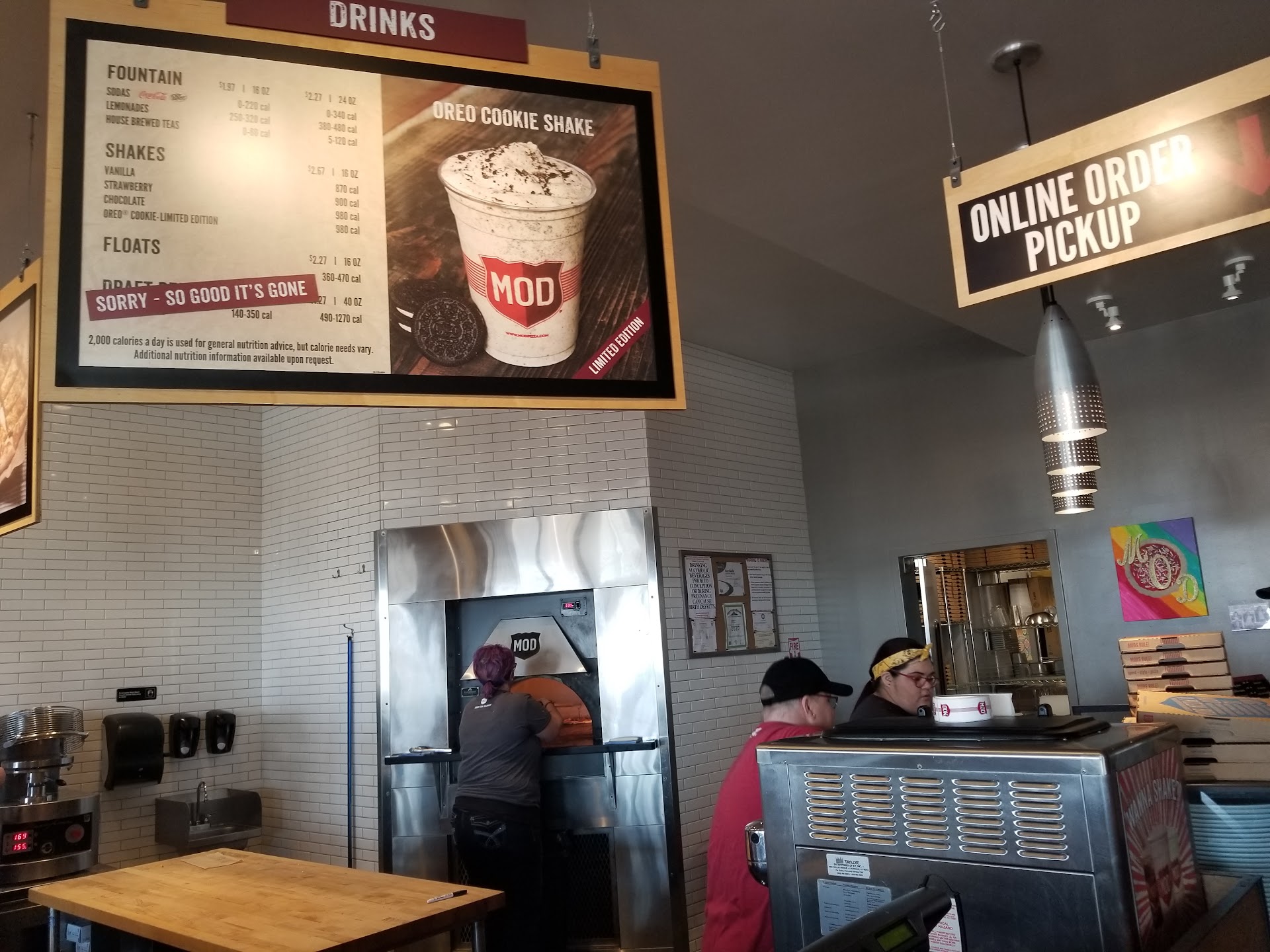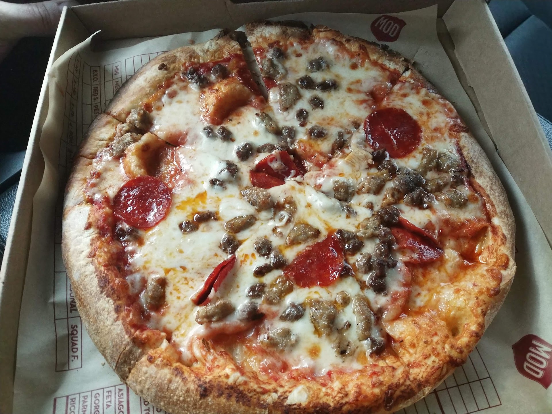 Ā Ā Ā Read moreSeattle-based pizza chain putting out good pies, pretty fast. You get one price for a 6" or an 11" (MOD or Mega Dough) individual, artisan-style pizzas. Choose from one of their Top 10 pizza combinations or create your own from over 30 toppings. They also offer salads, garlic bread, garlic or cinnamon strips, hand-spun milk shakes, plus beer and wine in most locations.