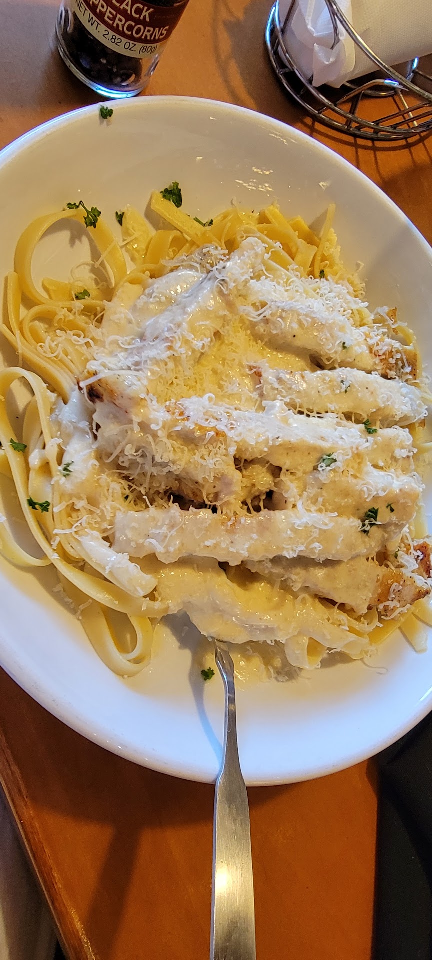 First, the portion sizes are obviously smaller than they were just a couple years ago. I have noticed this in the past couple visits, but figured I would mention it now since I'm going to the effort of writing a review. This is frustrating, especially since the prices are rising. I ordered the Seafood Alfredo as I frequently do, and it's gotten to the point where it barely covers the bottom of the huge plate they put it in! I ate salad, a bread stick, and my entire plate of food, and still did not feel full. A few years ago I never left OG without taking home leftovers. And believe me--this has nothing to do with my appetite or stomach, and everything to do with the serving sizes. You can shrink portions or you can increase prices, but it's really bad business to do both simultaneously.