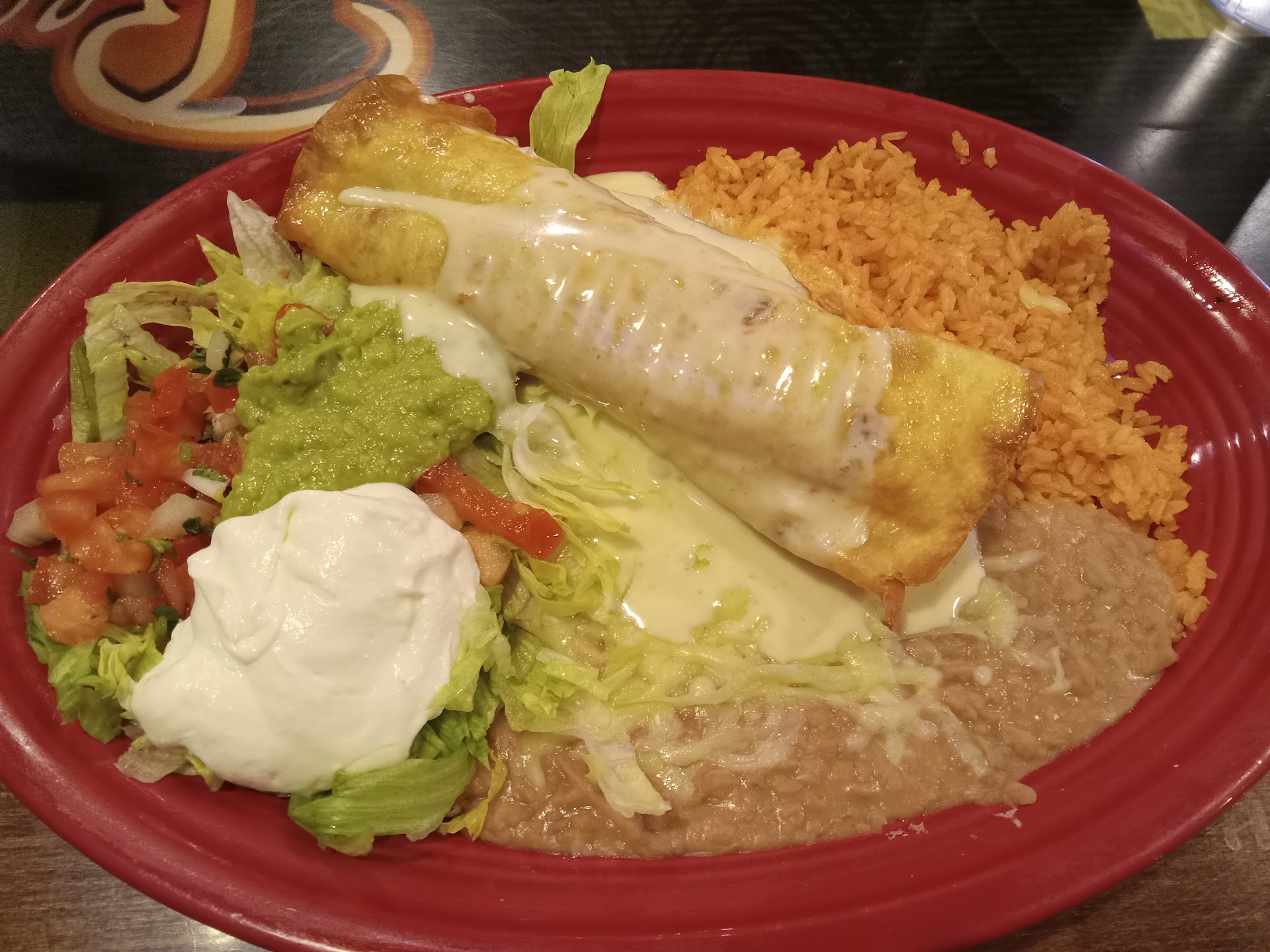Read moreWe stopped here while in town on vacation, around 8:30pm. There were three employees stamding at the podum who blatantly ignored us for two to three minutes while talking before seating us. It took at least five minutes before we were approached by a waiter. My order came out five minutes after ordering, but my boyfriend didn't get his meal until ten minutes after that. The food was alright. The rice tasted very dried out, like it had been sitting for awhile. The queso was great, but the 'salsa' was just tomato juice with herbs. Not horrible, but probably...