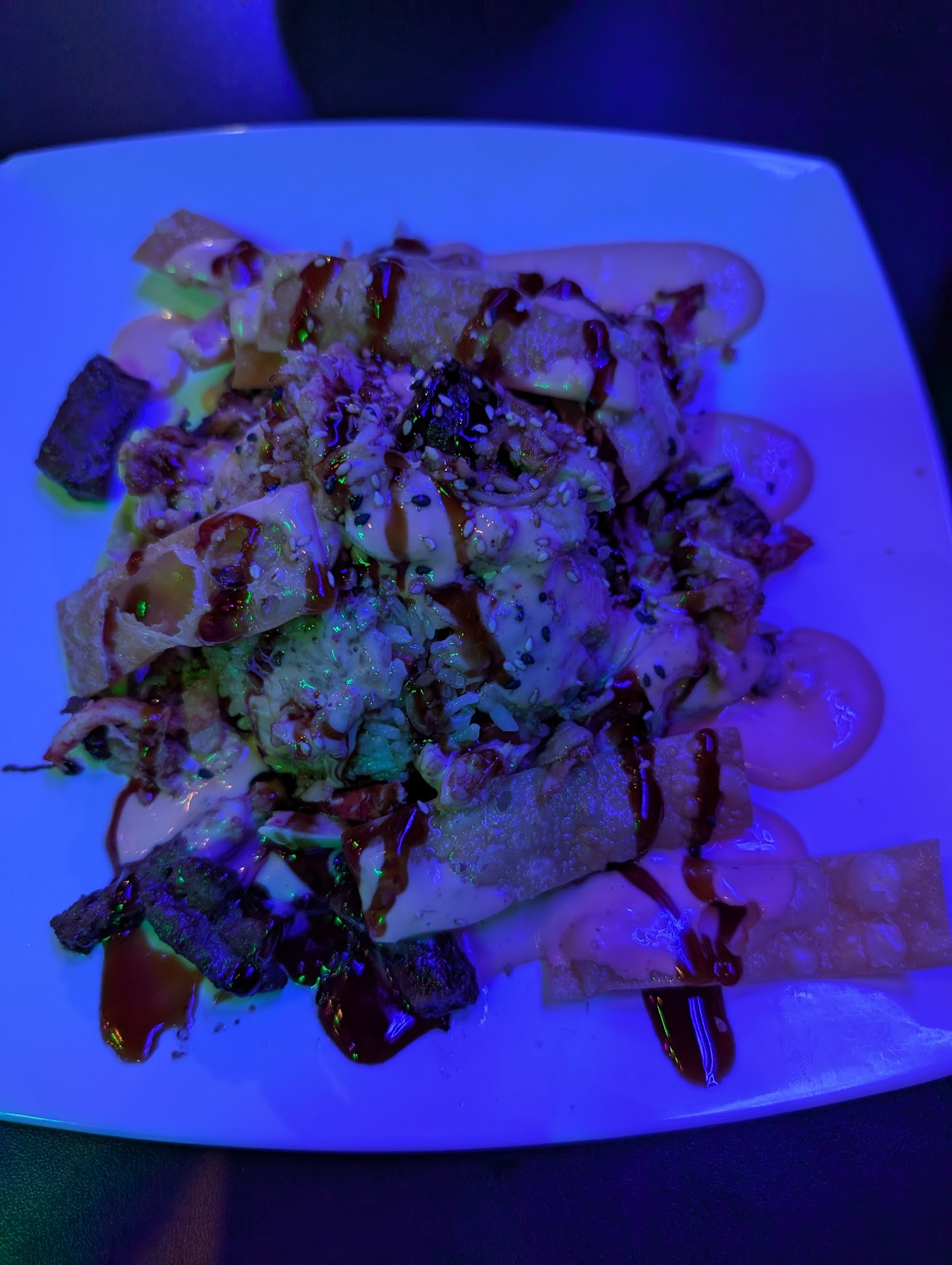 But the food is... Okay? Or it was when it opened. First time we went I was shocked by the prices. Cheapest sushi rolls being close to $10 is a bit high, and the vast majority being $13 or over is tough. Especially considering their rice is often over or undercooked. Their fried rice is pretty bland and flavorless and can't stand up to even most Chinese buffets, and the last time we went their white rice was so overcooked it was a congealed blob in the shape of the scoop they'd served it with. Fried apps are decent, headbanger shrimp are good (just their version of bang bang shrimp).