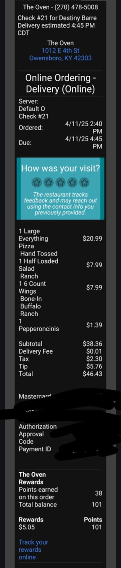 Only one employee came out to give me my order and take my payment. She was kind, but she was short with her words. No complaints either way just really no interaction. Like I said it was a short day and I probably came in towards the end. the pizza was $30 plus a tip probably around 37 bucks Not super unrealistic considering how heavy the pizza is because of all the meat and cheese that has to go on it so pricing seems fair overall would give this restaurant a 3.5 just based off the taste and enjoy ability of that...
