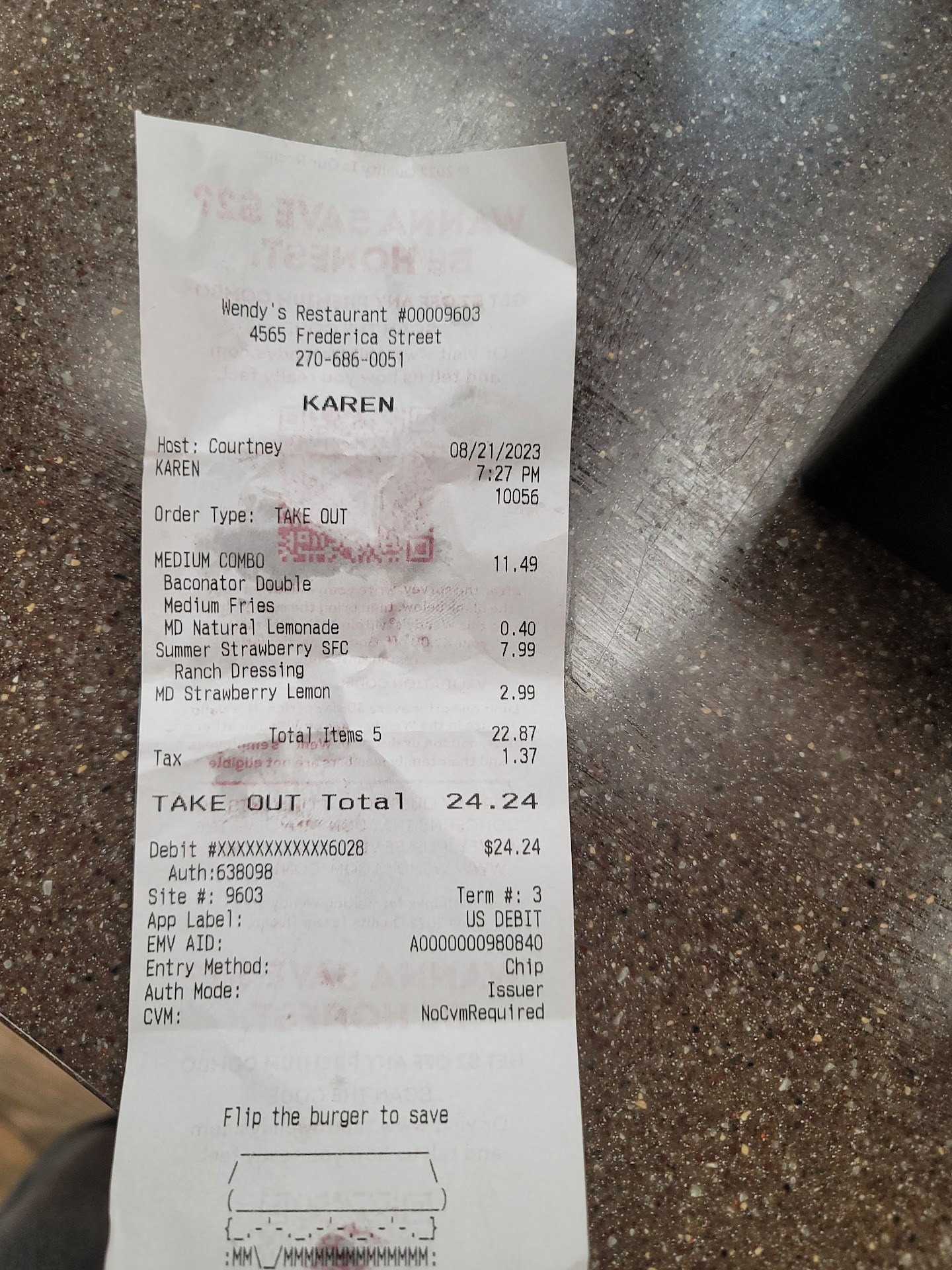 Read moreThe employee in the grill with long dark hair slicked back under his hat was beyond rude. Here is what happened, I am handed the bag of food with the sandwich on top of the fries, I dropped the burger it happens. I wasn't angry, it was partially my fault. the nice lady at the window asked the rude employee to remake the sandwich, just a single sandwich which I guess was a huge burden on his shoulders, the rude male makes it and shout now tell him to have a firm grip on it. Like dude, I get being frustrated, I used to work fast food, but shouting that to a guest, I would fire my employee on the spot. Just saying. You are the operate a business, I assume Wendy's...